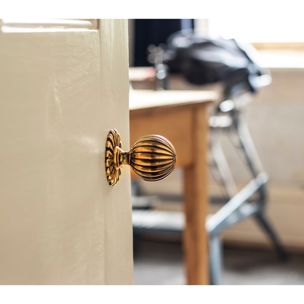 Aged Brass Flower Mortice/Rim Knob Set | From The Anvil