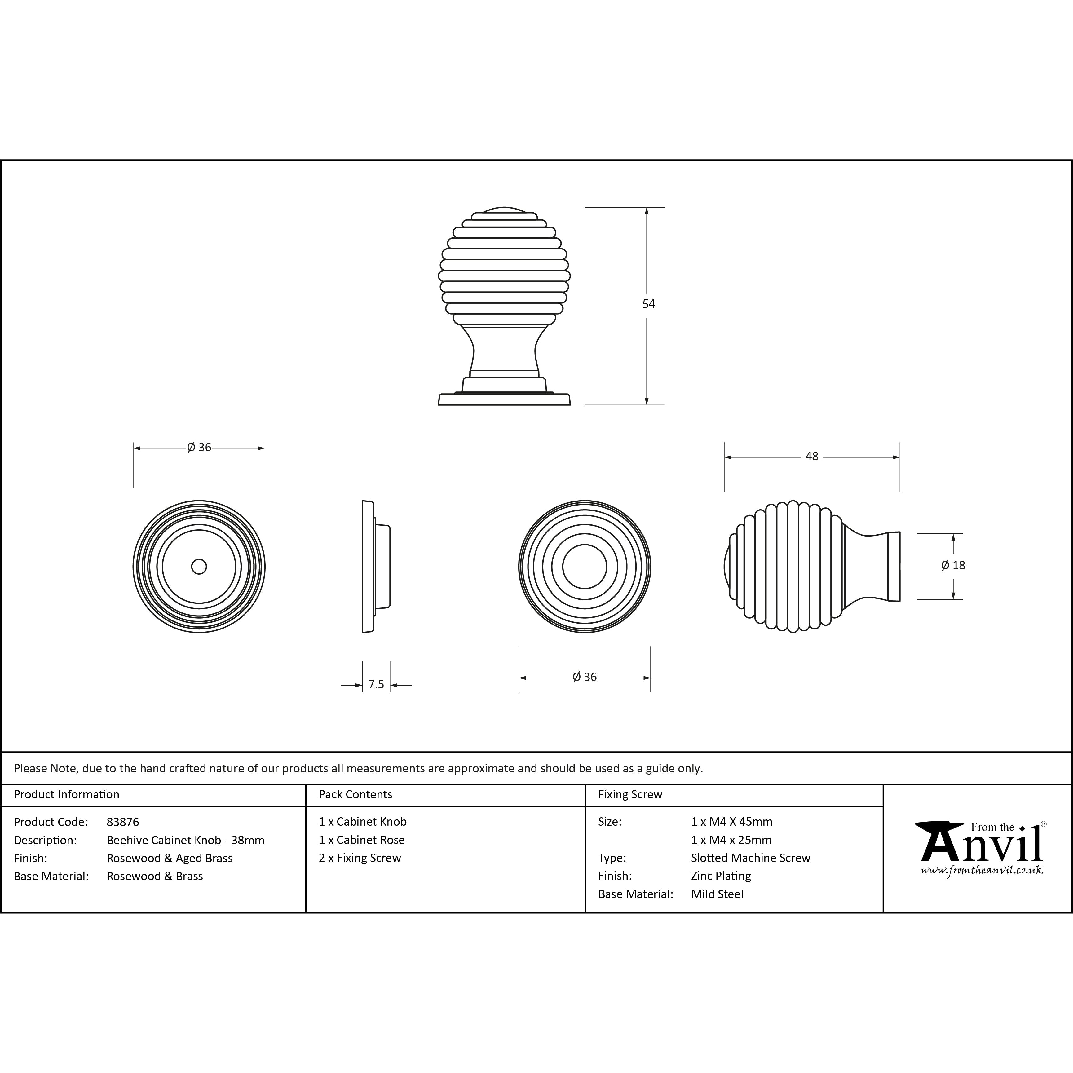 Rosewood and AB Beehive Cabinet Knob 38mm | From The Anvil