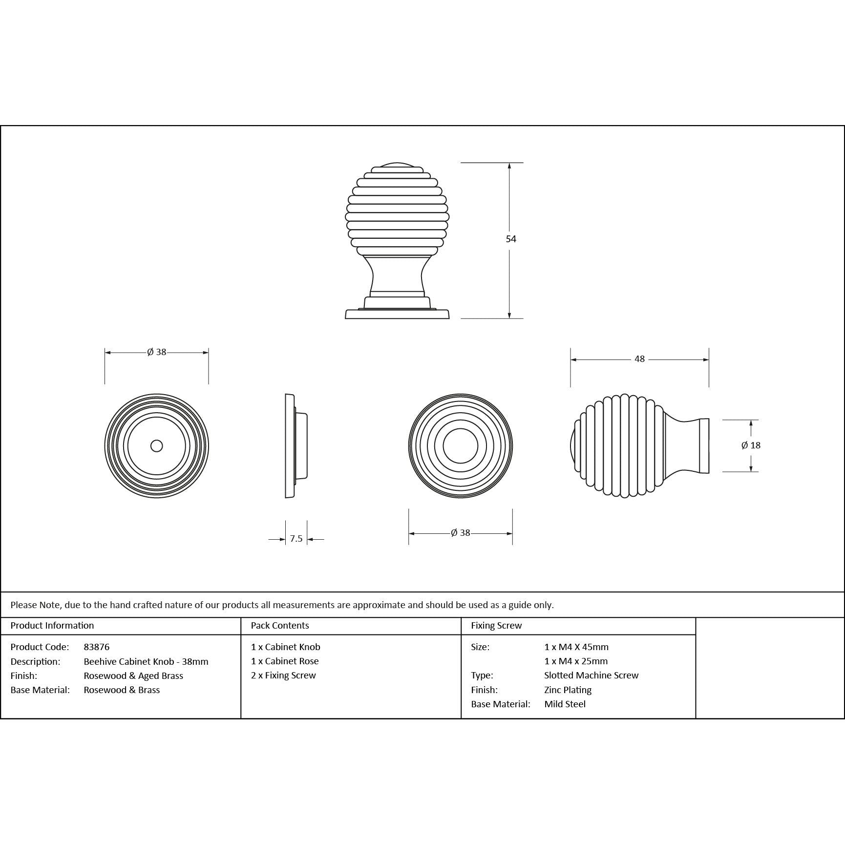 • Designed to match our Beehive mortice/rim knob sets to create consistency throughout your home.
