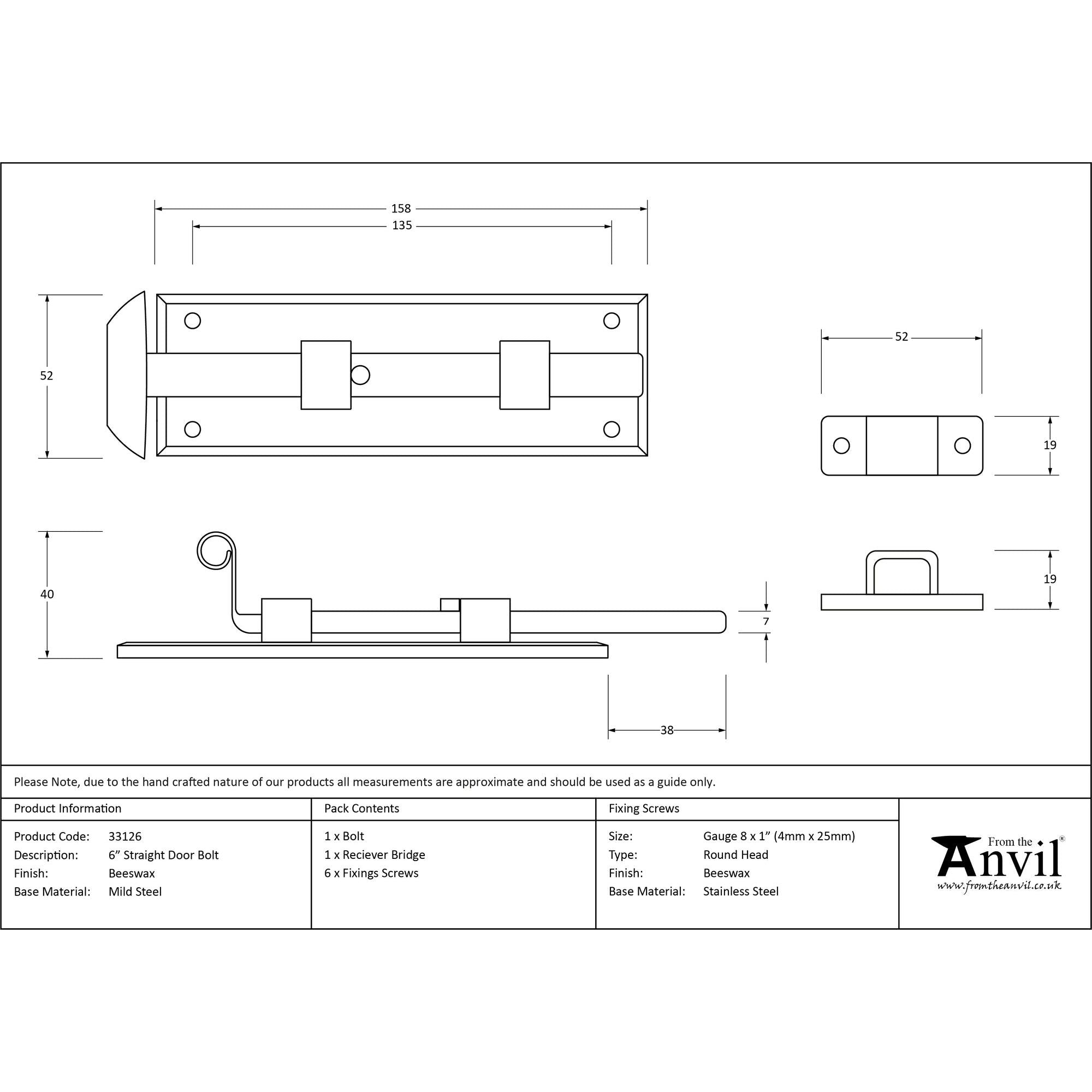 Beeswax 6" Straight Door Bolt | From The Anvil