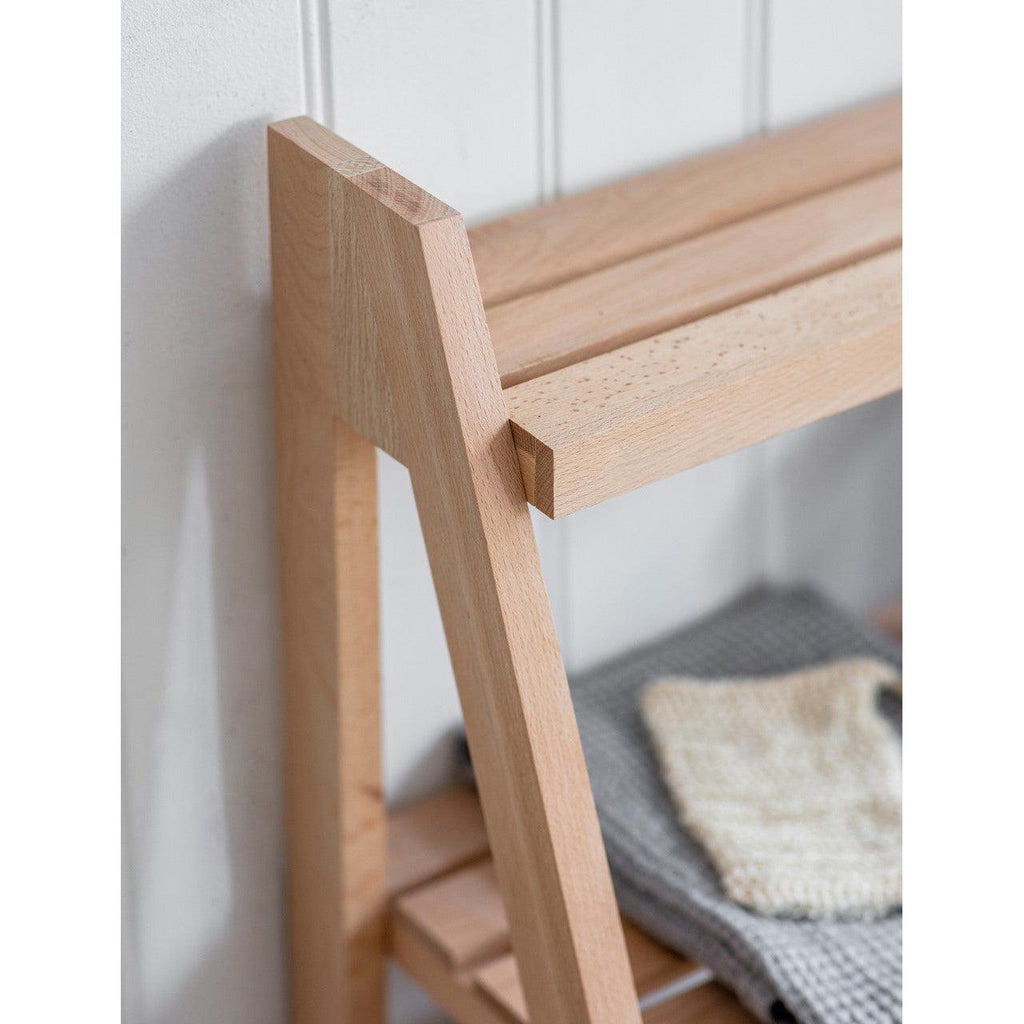Adding another dimension to interior space, our Southbourne Shelf Ladder is crafted in natural beech. Occupying minimal floor space, it offers the opportunity to house belongings beautifully as 'display items' on its slatted shelves, in an open storage solution. Arriving fully assembled and featuring 2 x polyester strips on the back so it can be easily fixed to a wall, the Shelf Ladder is available in two sizes, both of which work well paired with the Bembridge and Chesil storage boxes.