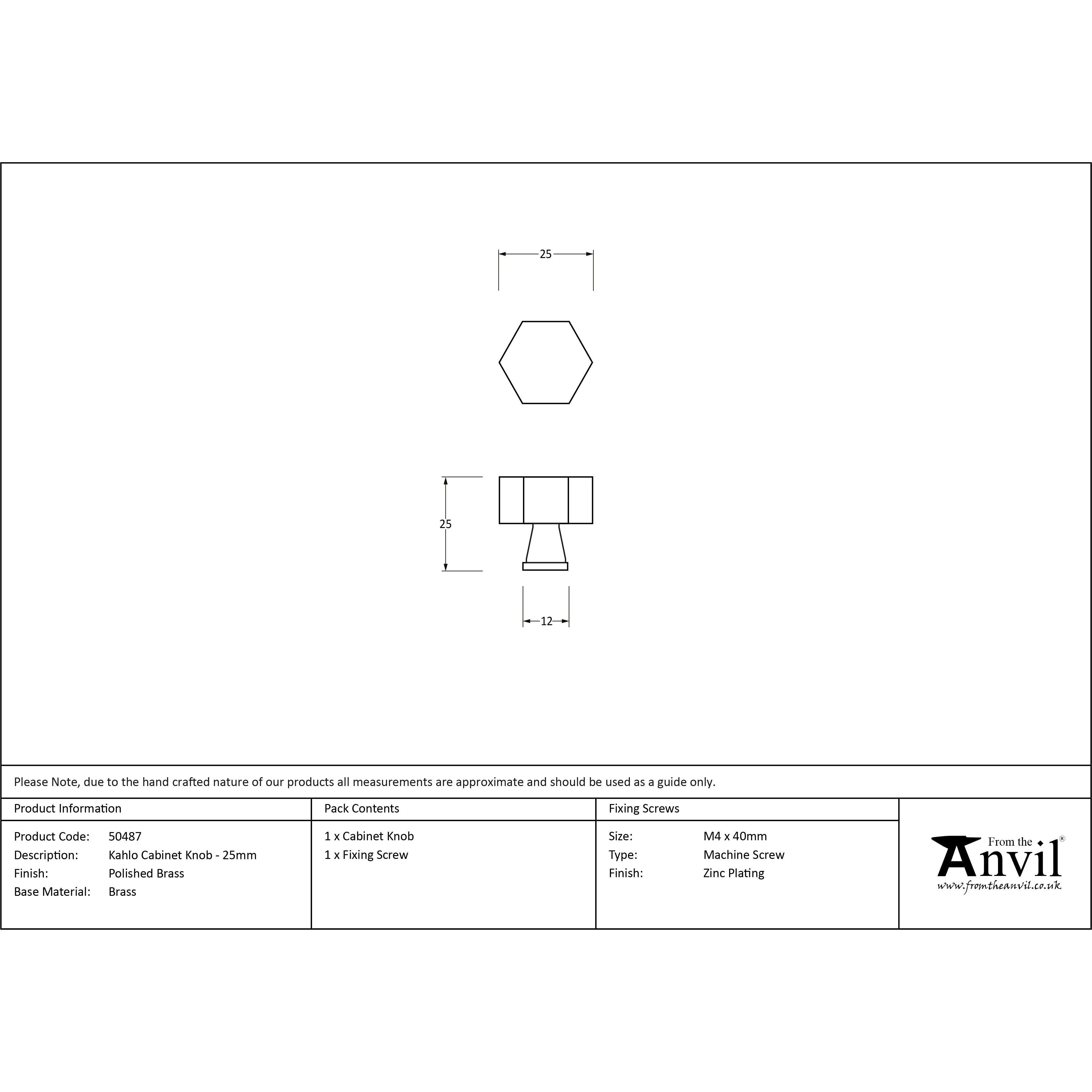 Polished Brass Kahlo Cabinet Knob - 25mm | From The Anvil