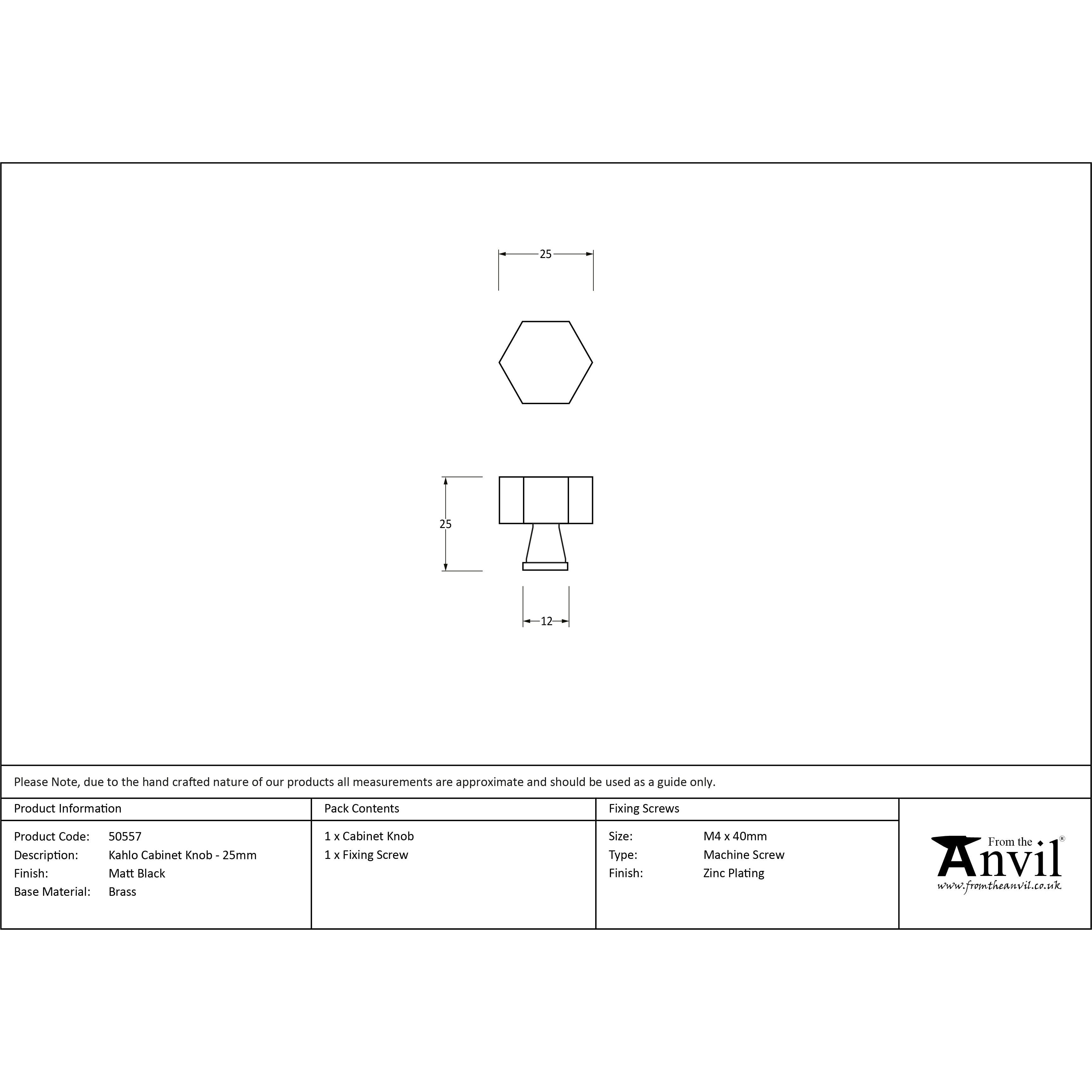 Matt Black Kahlo Cabinet Knob - 25mm | From The Anvil