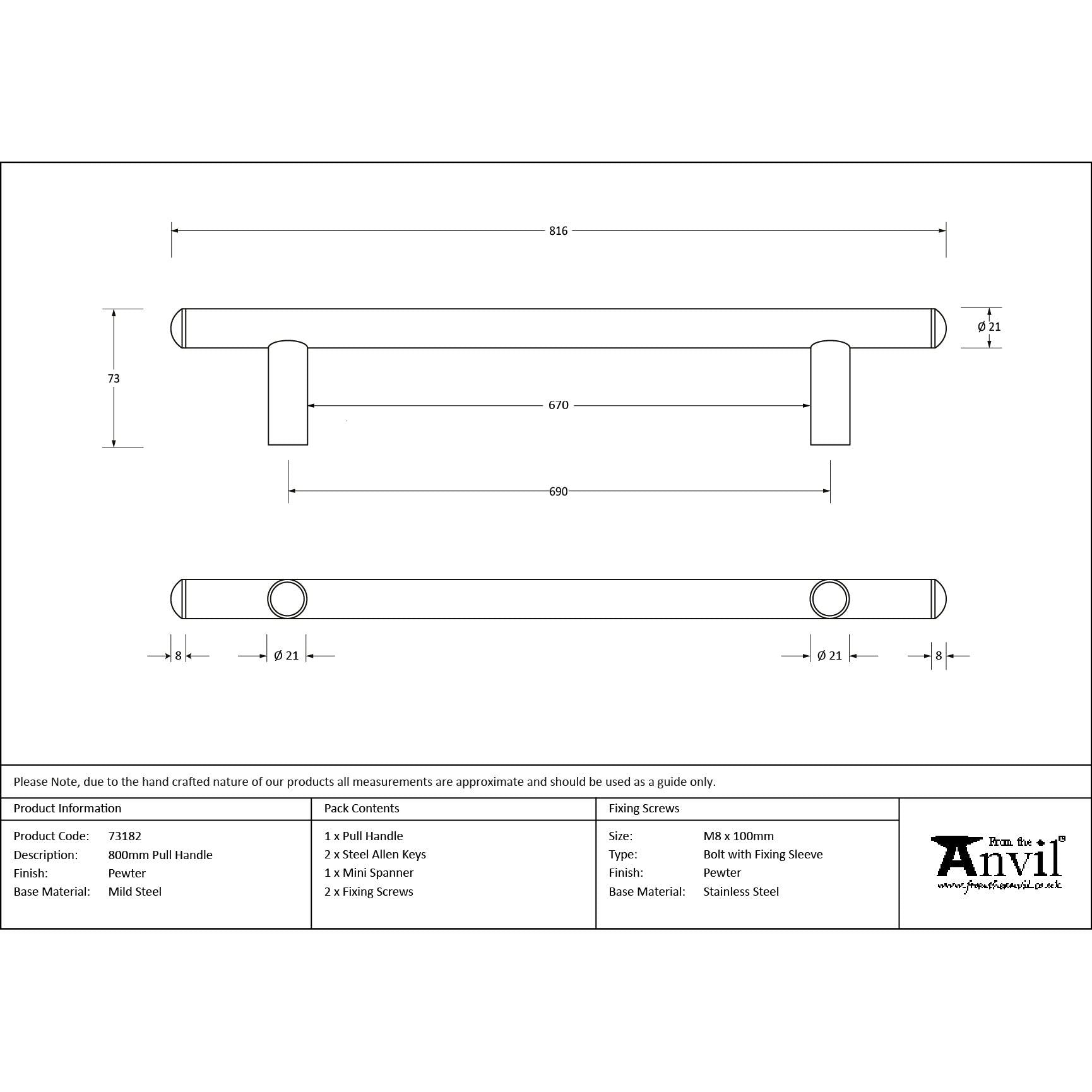 Pewter 800mm Pull Handle | From The Anvil