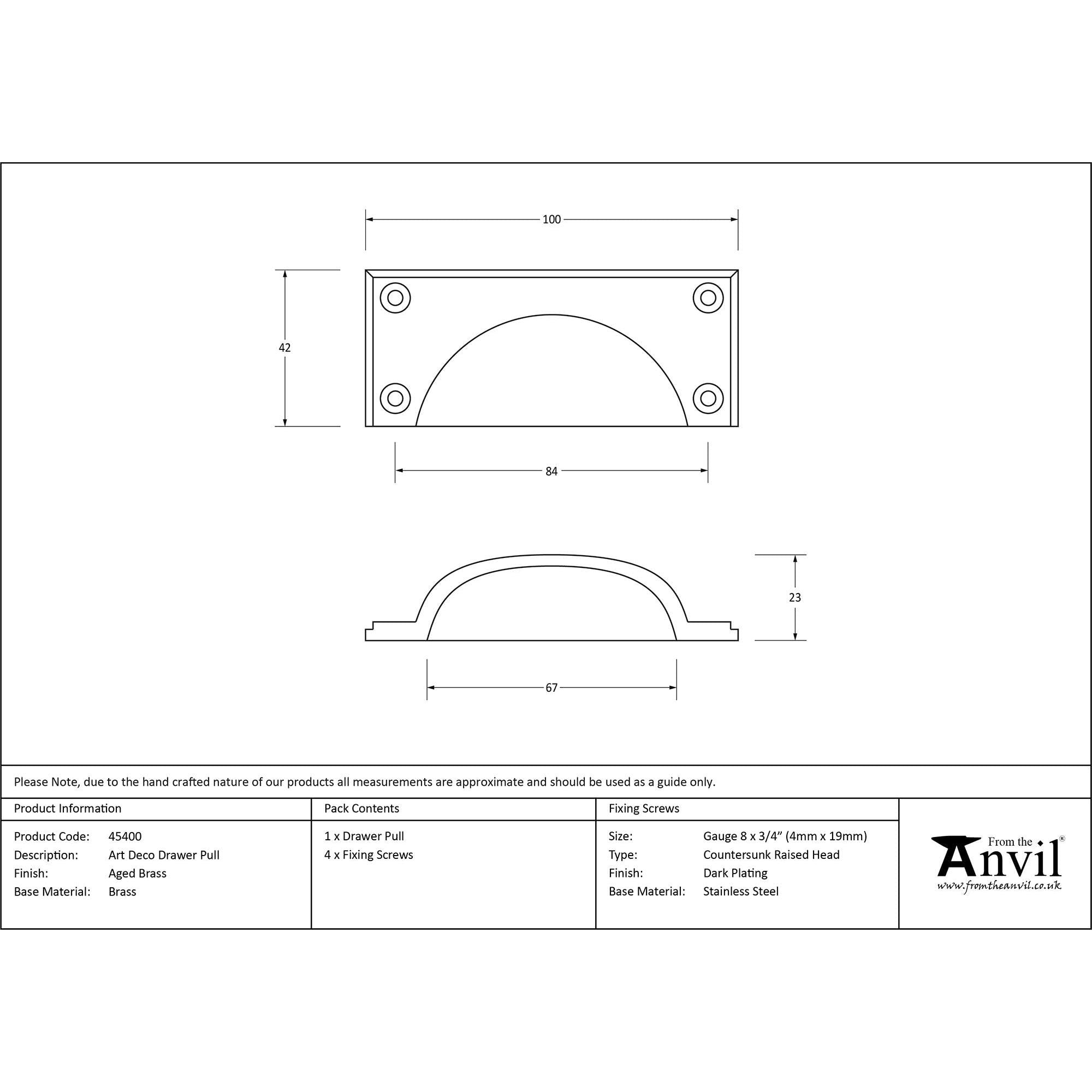 Aged Brass Art Deco Drawer Pull | From The Anvil