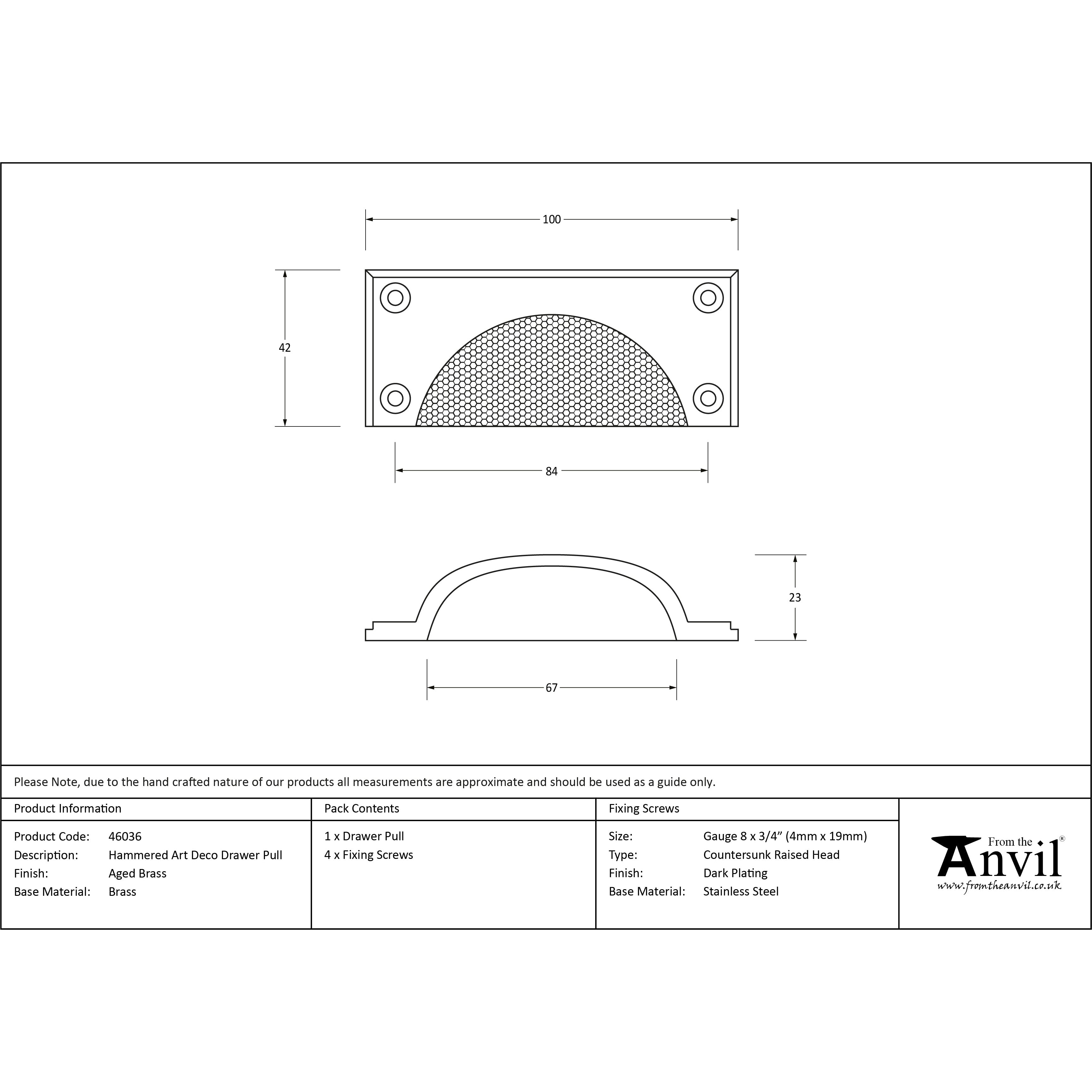 Aged Brass Hammered Art Deco Drawer Pull | From The Anvil