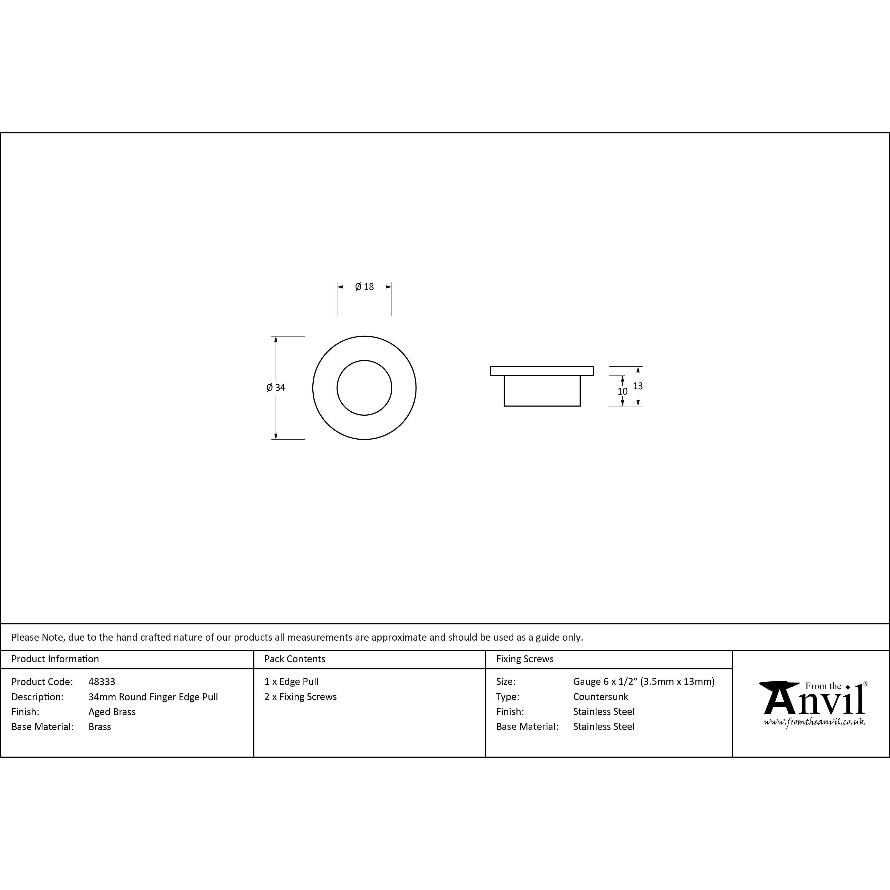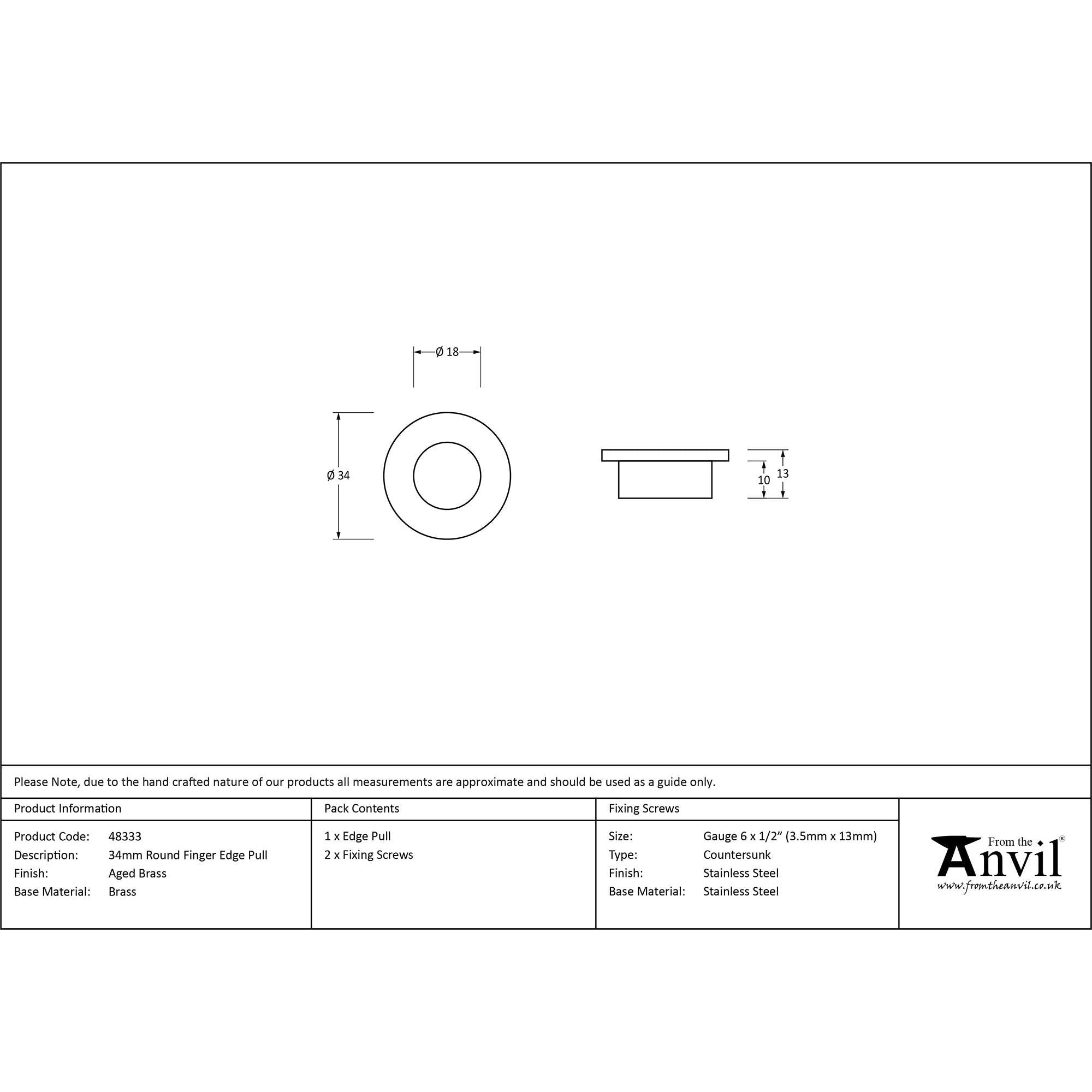Aged Brass 34mm Round Finger Edge Pull | From The Anvil