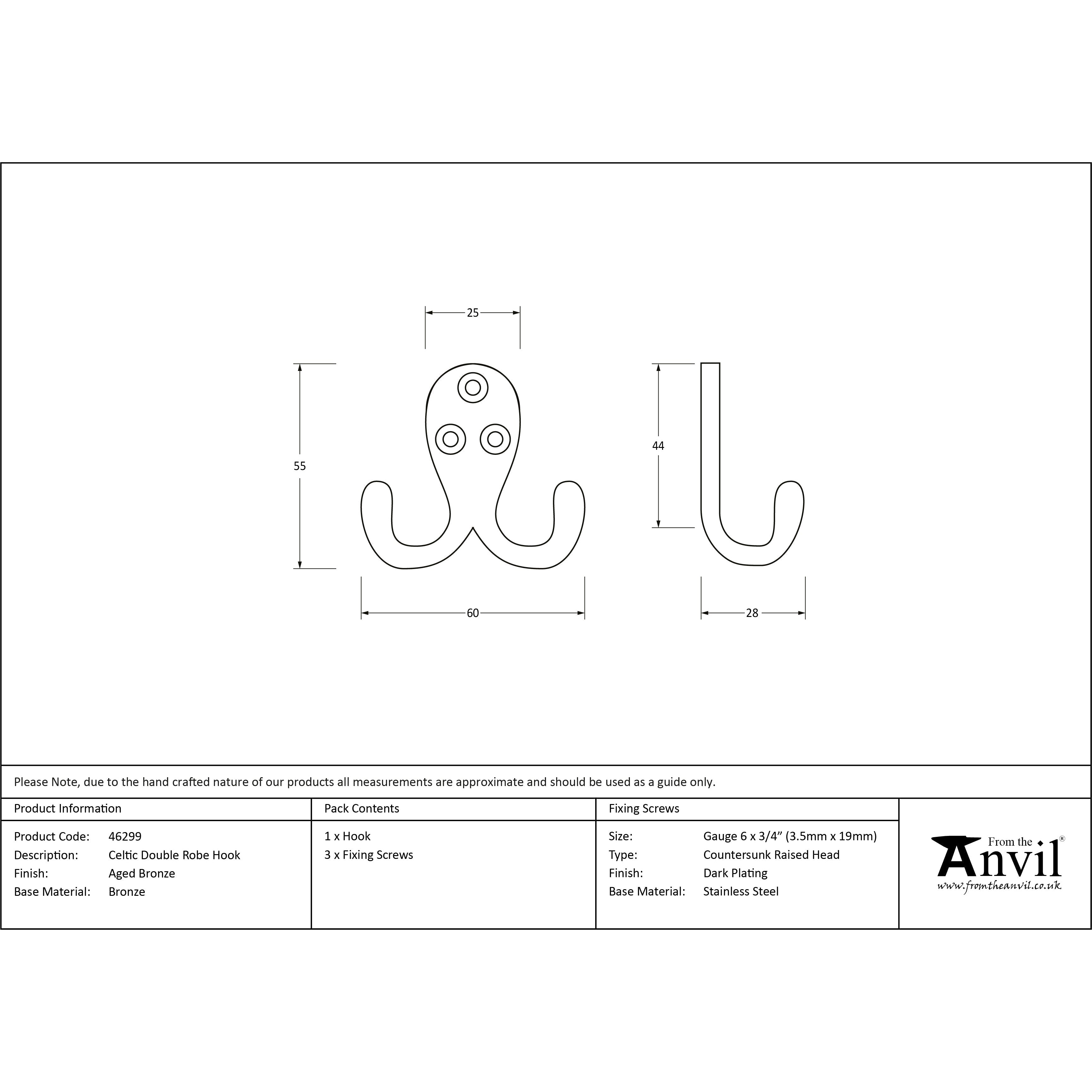 Aged Bronze Celtic Double Robe Hook | From The Anvil