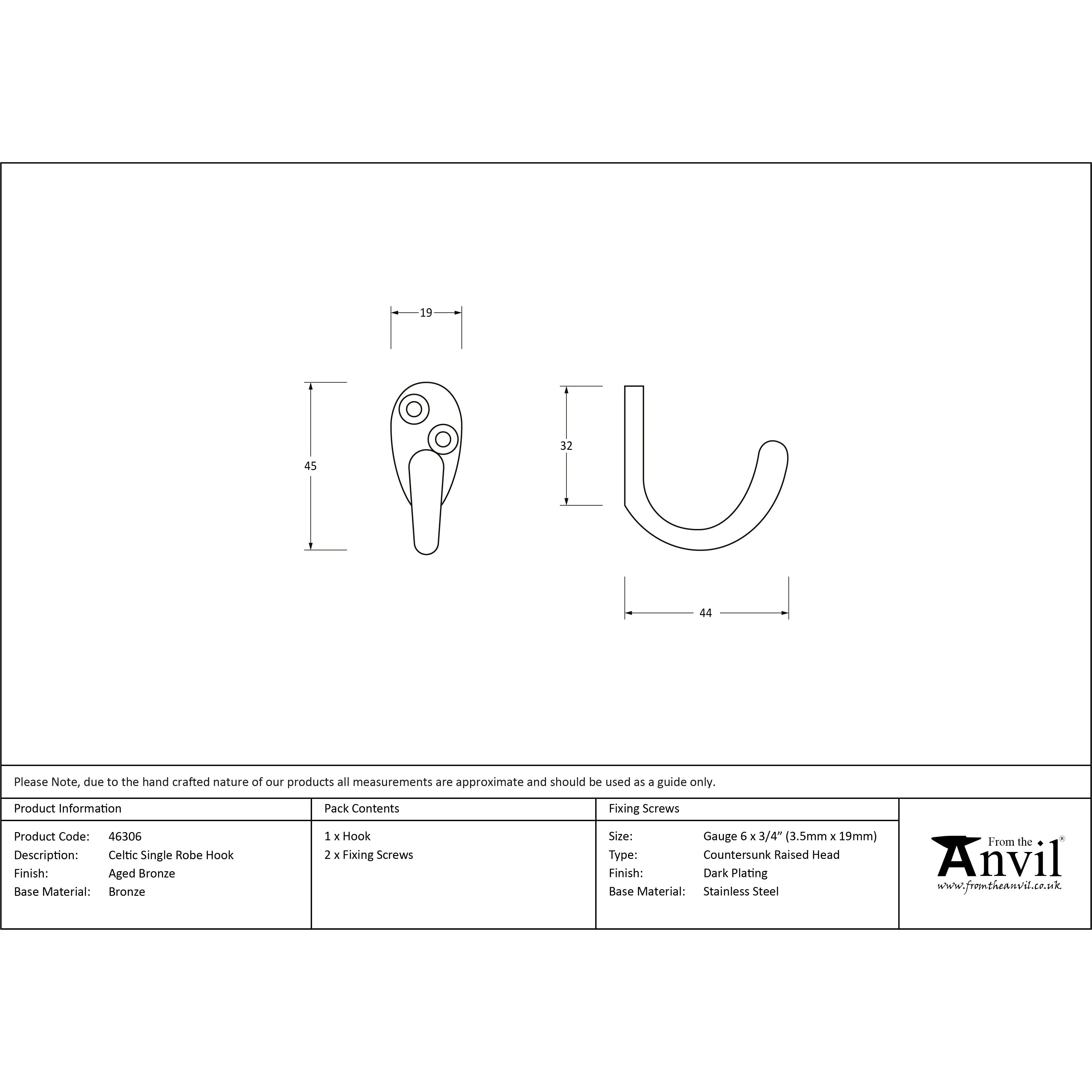 Aged Bronze Celtic Single Robe Hook | From The Anvil