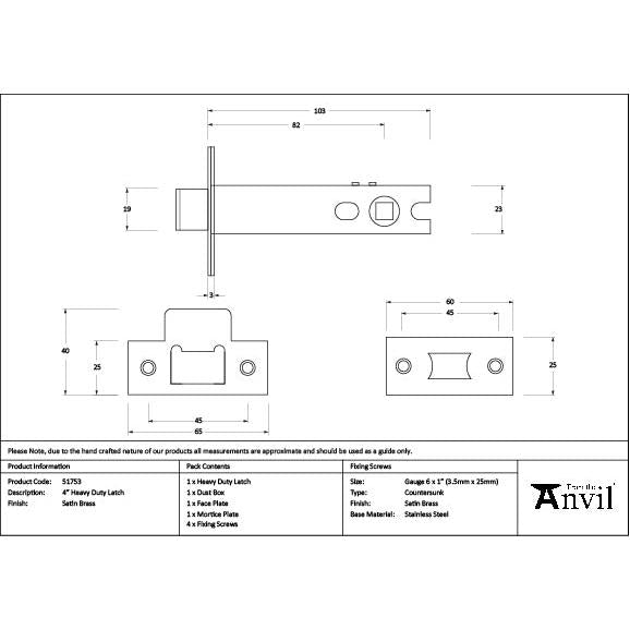Satin Brass 4" Heavy Duty Latch
