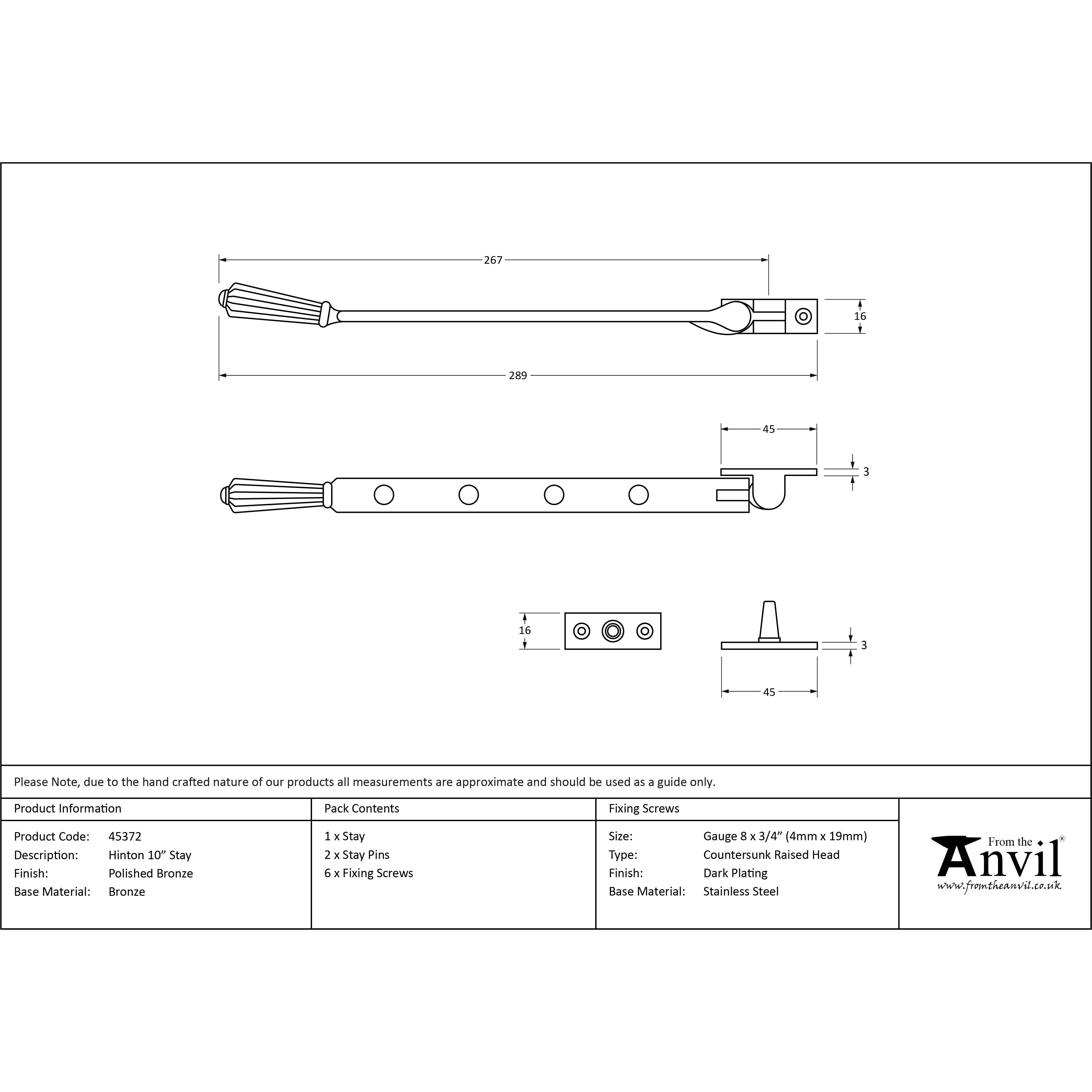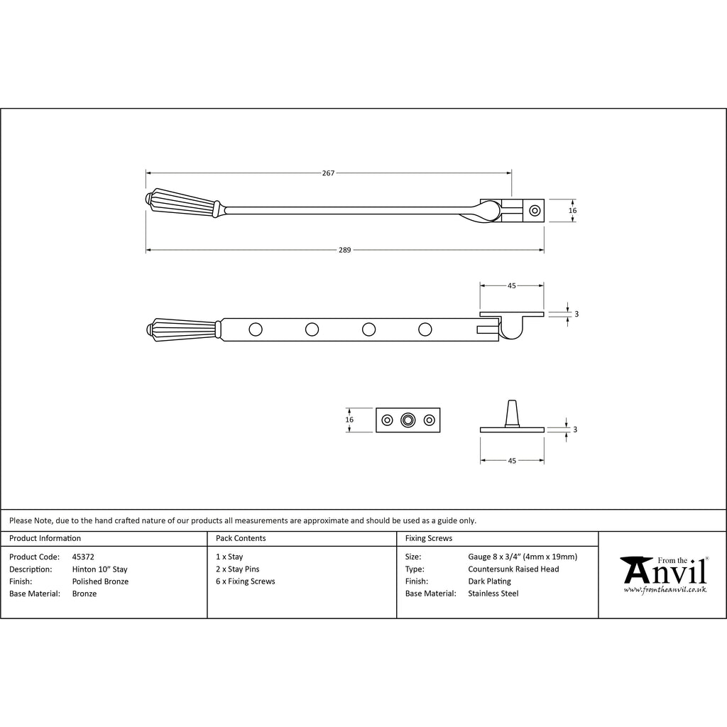 Polished Bronze 10" Hinton Stay | From The Anvil