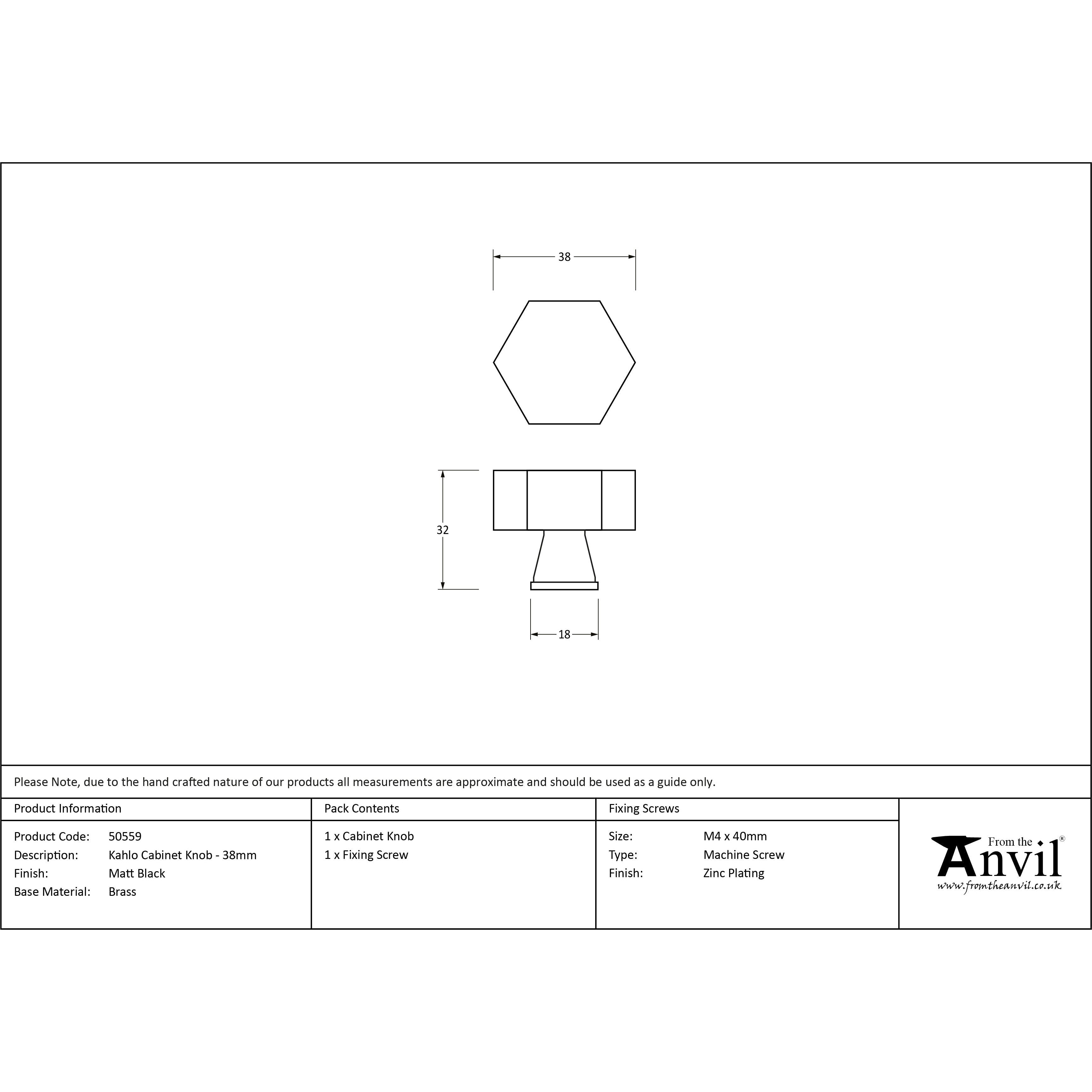 Matt Black Kahlo Cabinet Knob - 38mm | From The Anvil