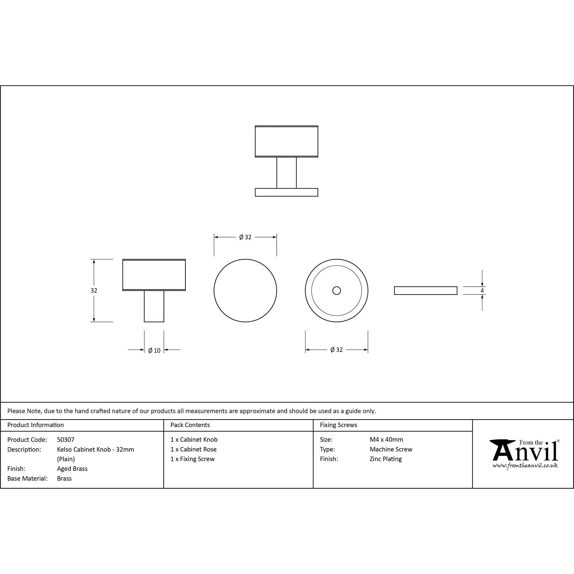 Aged Brass Kelso Cabinet Knob - 32mm (Plain) | From The Anvil