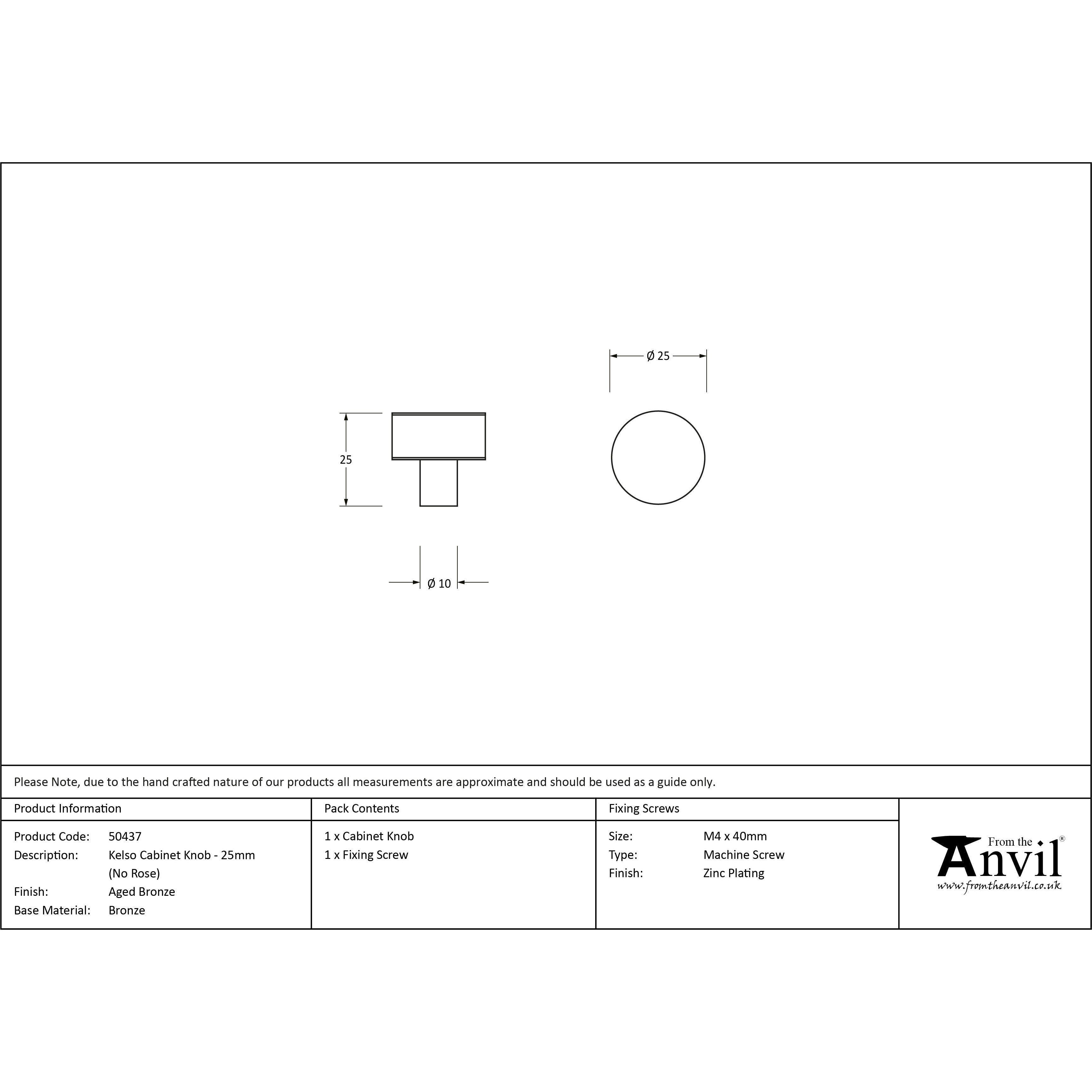 Aged Bronze Kelso Cabinet Knob - 25mm (No rose) | From The Anvil