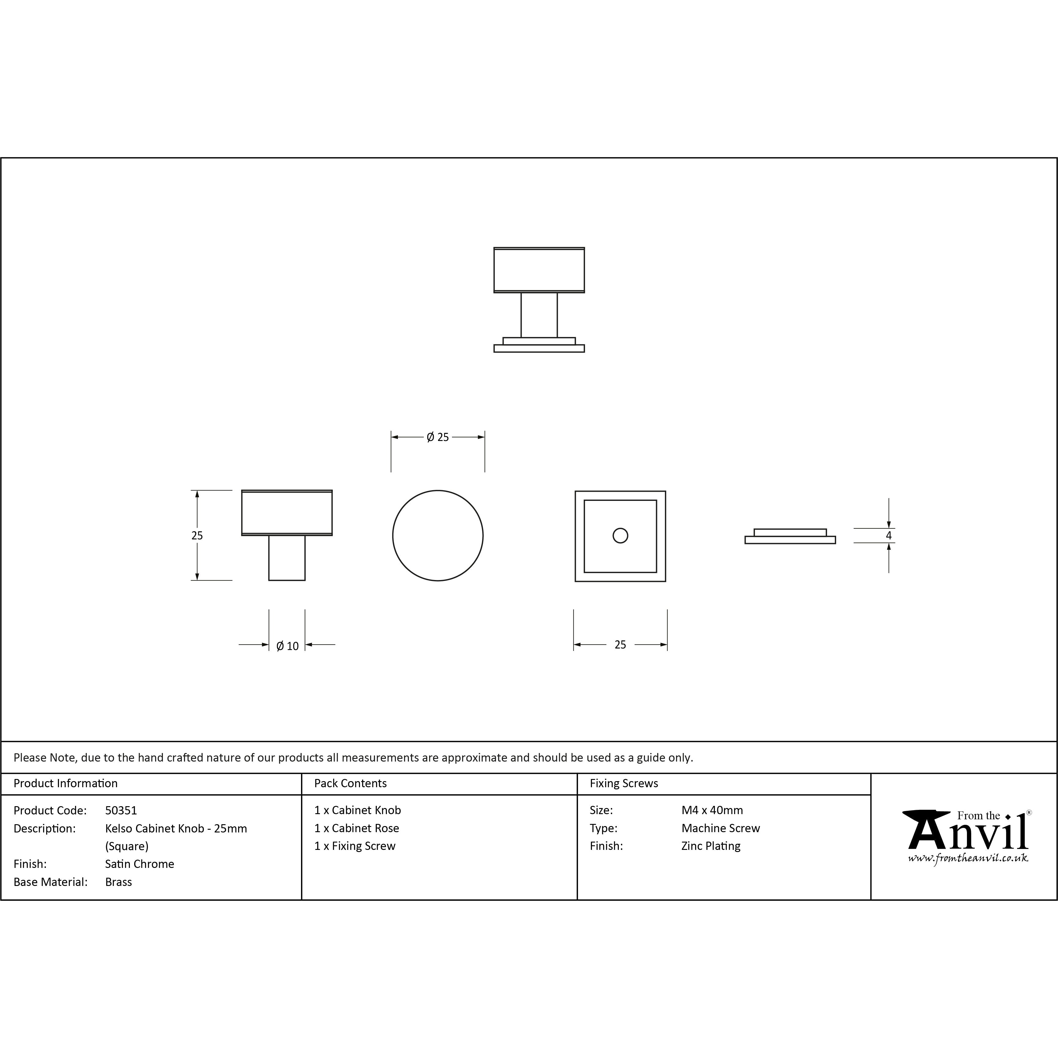 Satin Chrome Kelso Cabinet Knob - 25mm (Square) | From The Anvil