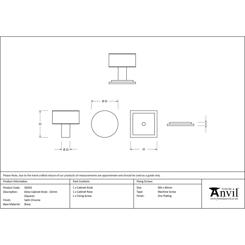 Satin Chrome Kelso Cabinet Knob - 32mm (Square) | From The Anvil