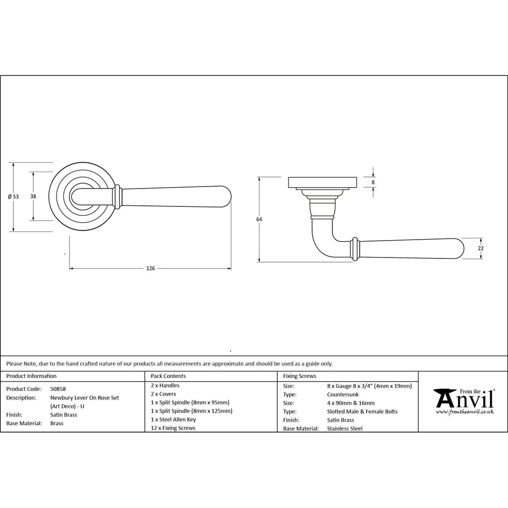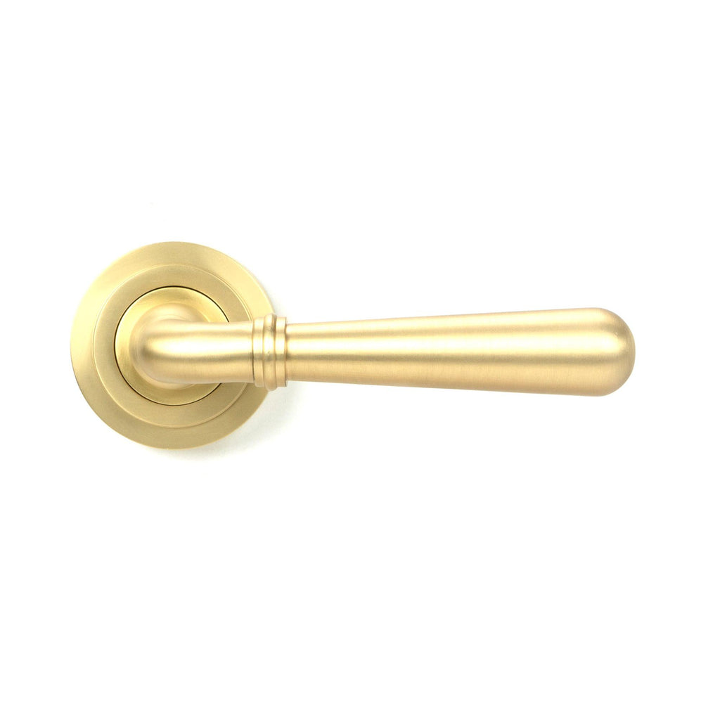 Satin Brass Newbury Lever on Rose Set (Art Deco) - Unsprung | From The Anvil