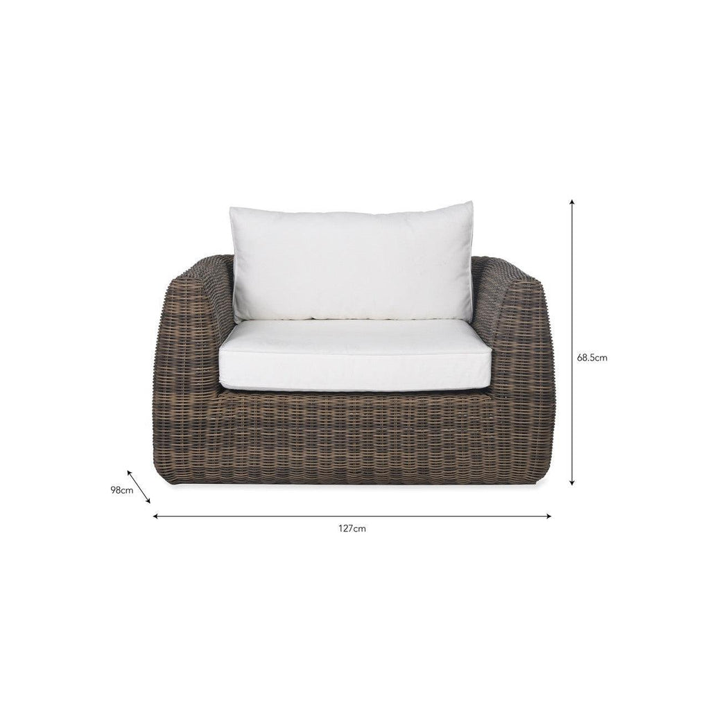 Recreate that relaxed Mediterranean feel at home with the Skala Armchair. Made from chunky pe rattan with a subtle curve, we've contrasted with comfy off-white cushions. Style as a pair on the patio, create an outdoor lounge with four or pick as an addition to the matching Skala Sofa Set.