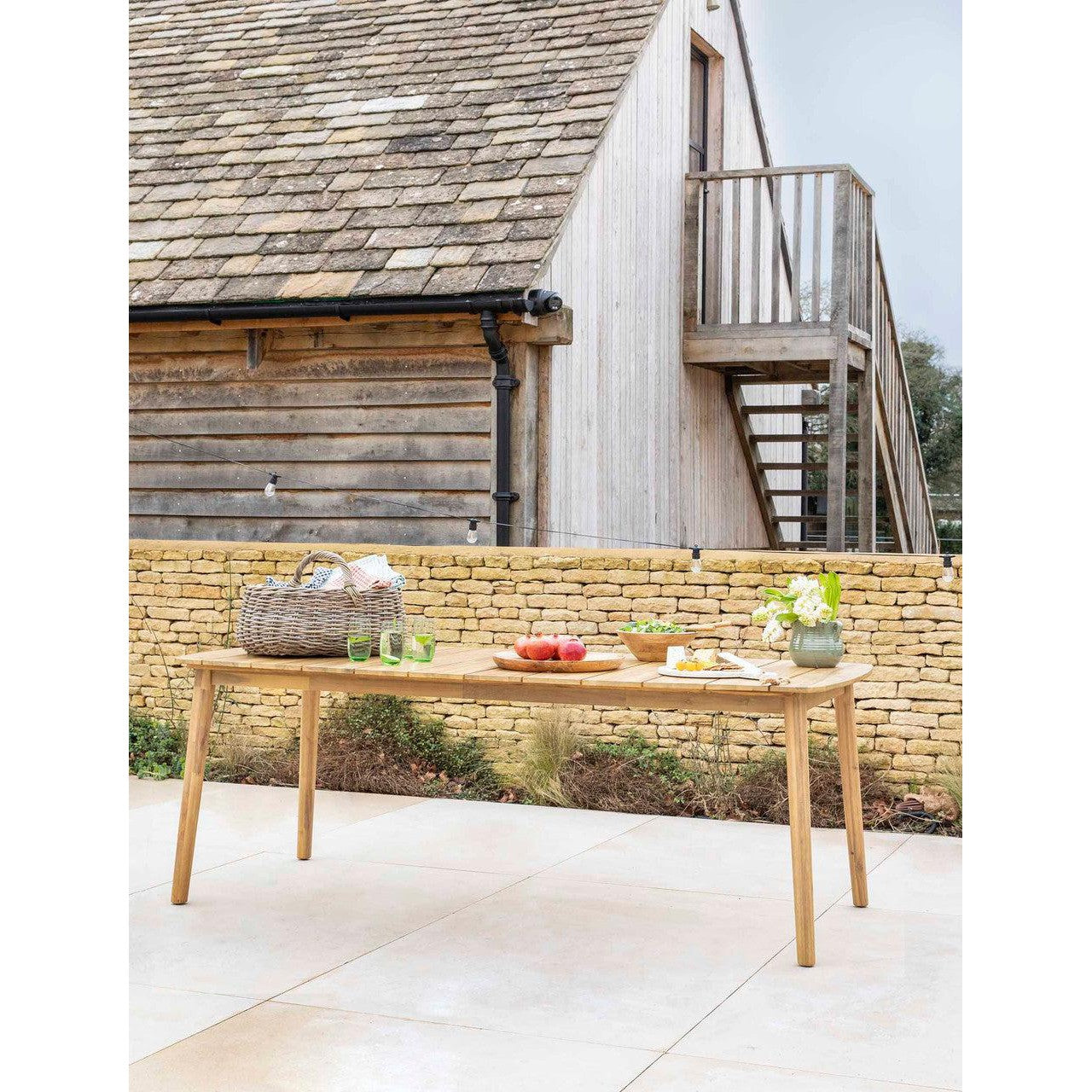 Crafted from solid acacia, our sturdy and weatherproof Harford Dining Table can stay outdoors throughout the year, but a protective covering will keep it in great condition through the winter months. Team this table with our matching Harford Rope Chairs for a sophisticated finishing touch.