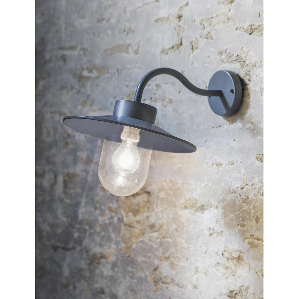 Industville Swan Neck Outdoor & Bathroom Wall Light - Pewter - Tube Glass