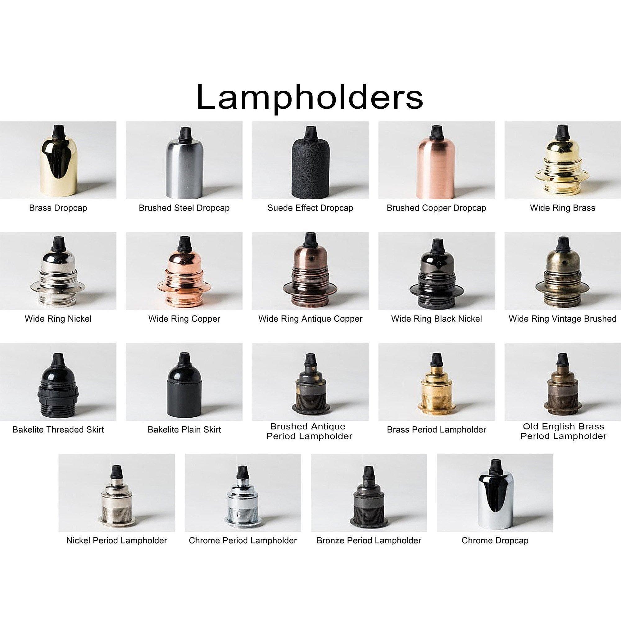 - Select Plug (and switch if required) colour, Fabric cable, and lampholder, we'll wire it to order!