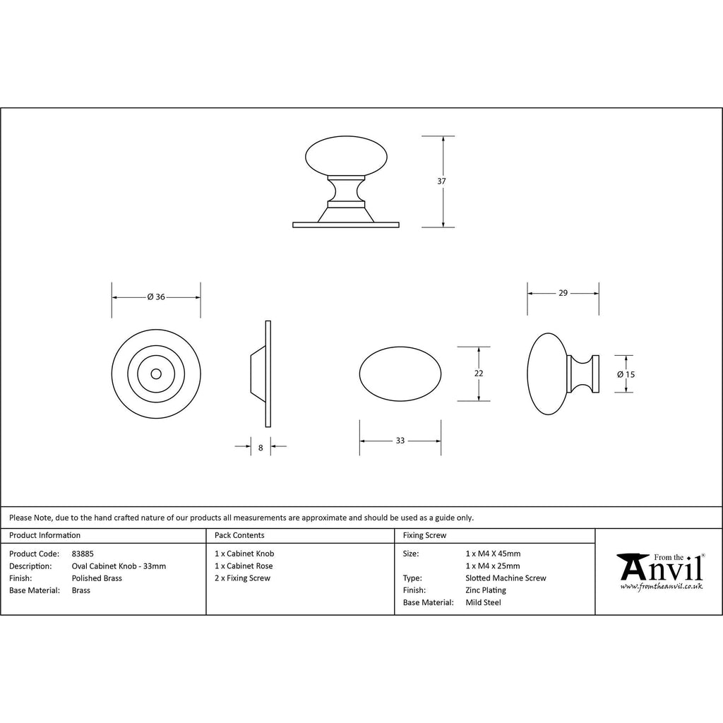 Polished Brass Oval Cabinet Knob 33mm | From The Anvil