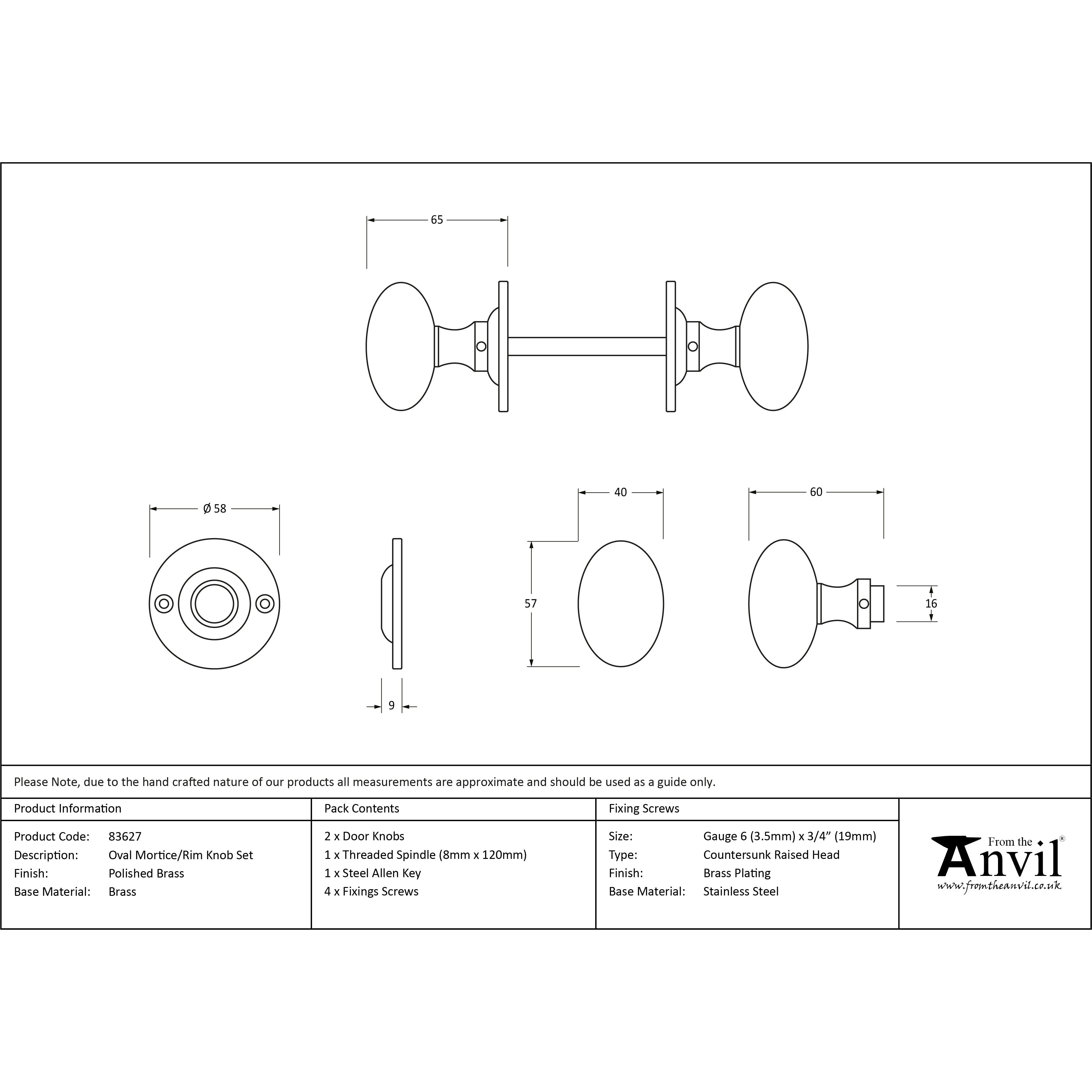 Polished Brass Oval Mortice/Rim Knob Set | From The Anvil