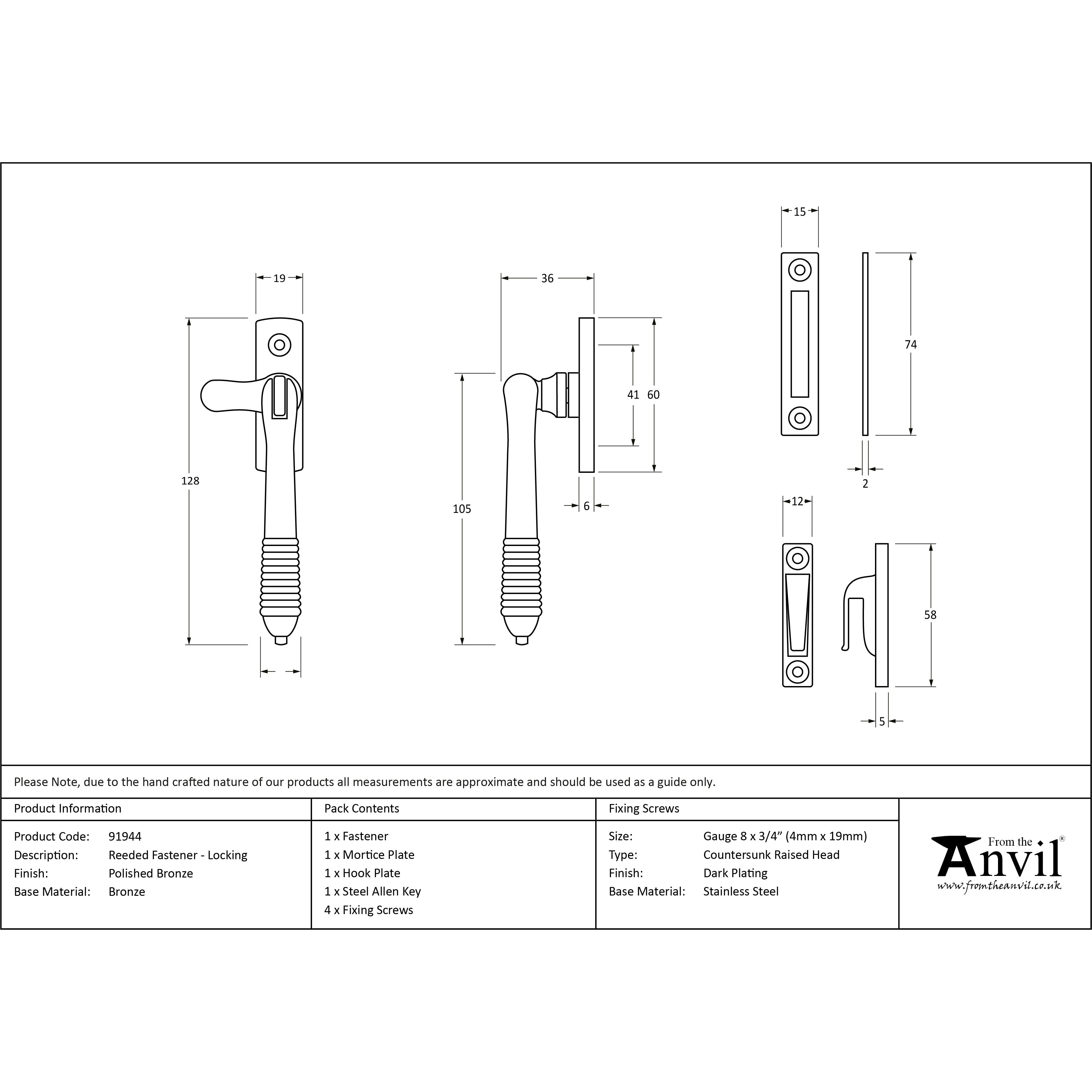 Polished Bronze Locking Reeded Fastener | From The Anvil