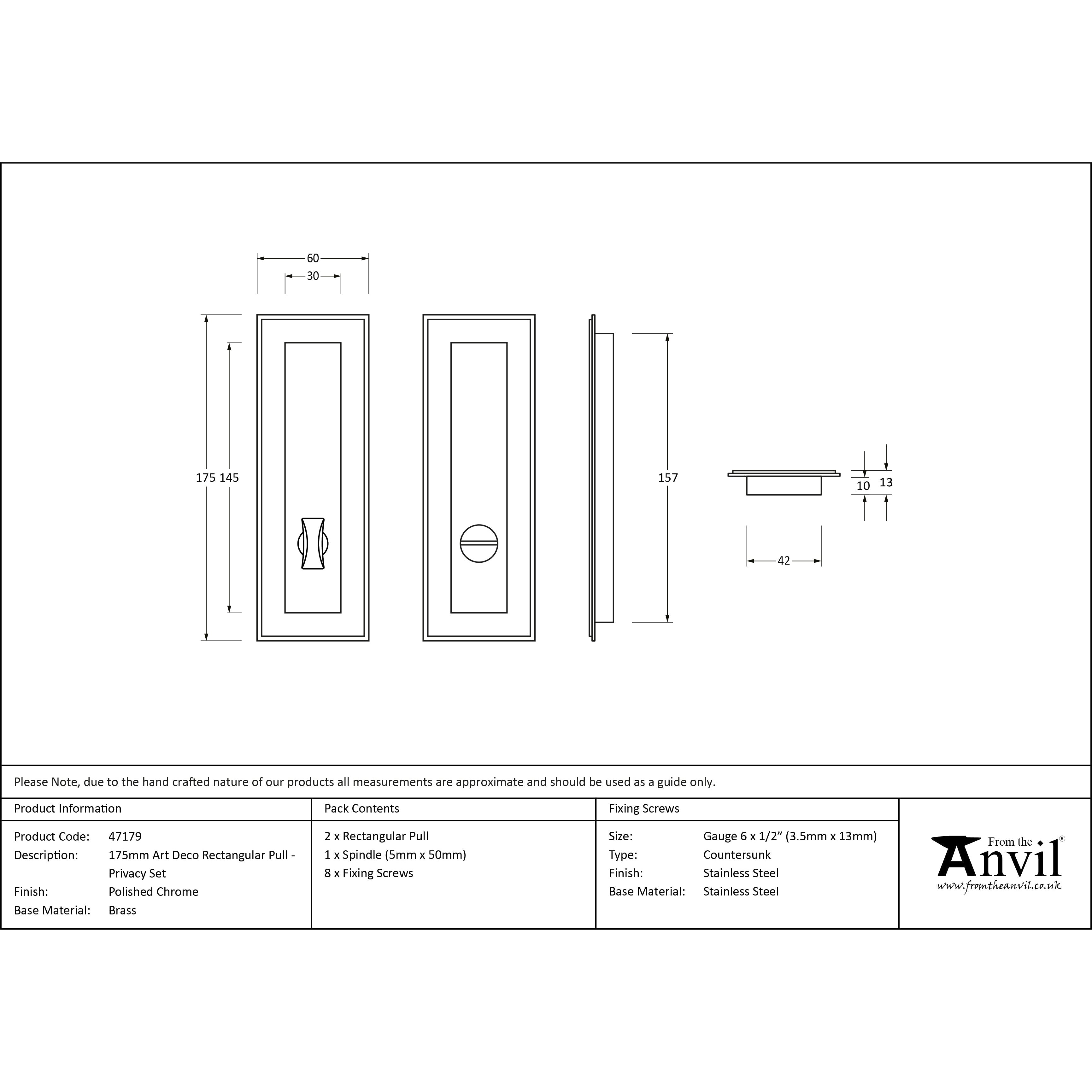 Polished Chrome 175mm Art Deco Rectangular Pull -Privacy Set | From The Anvil