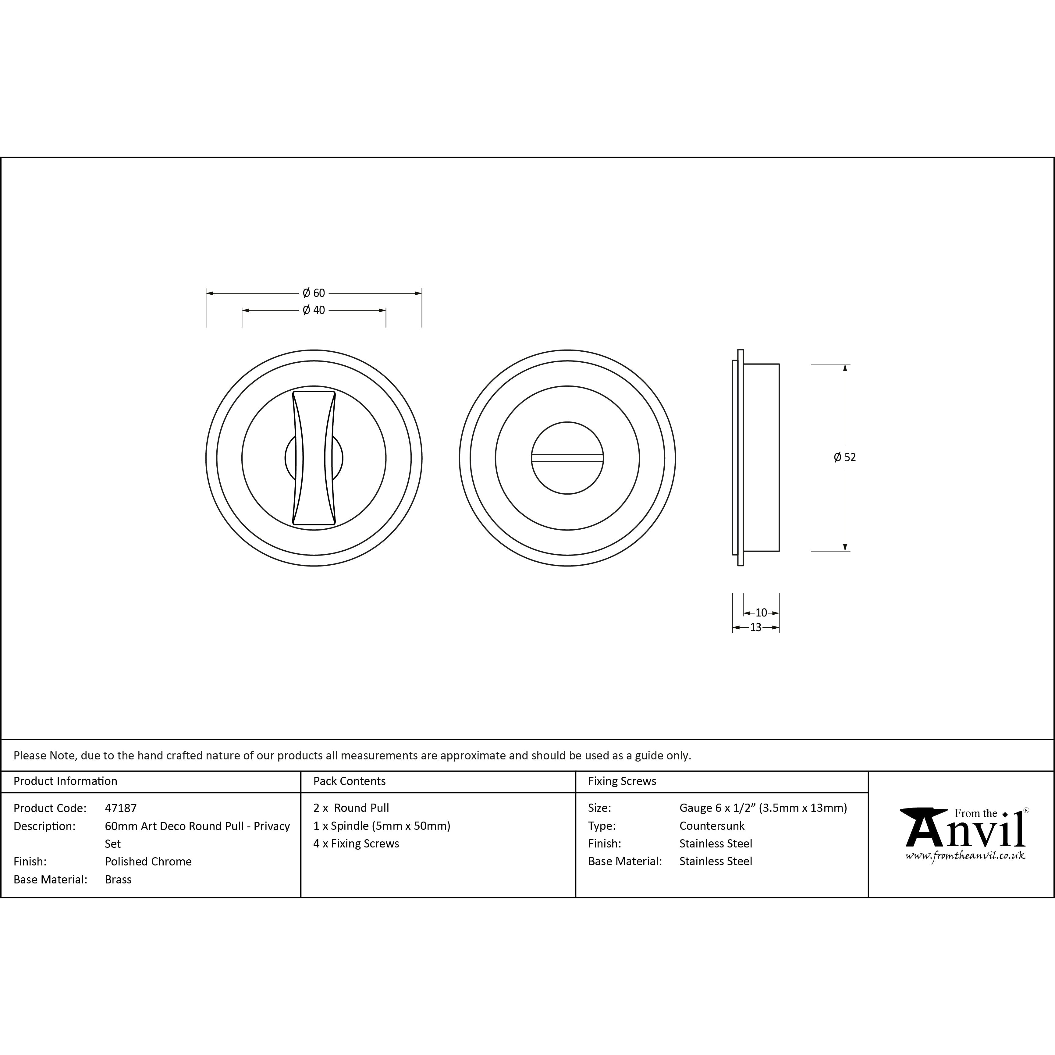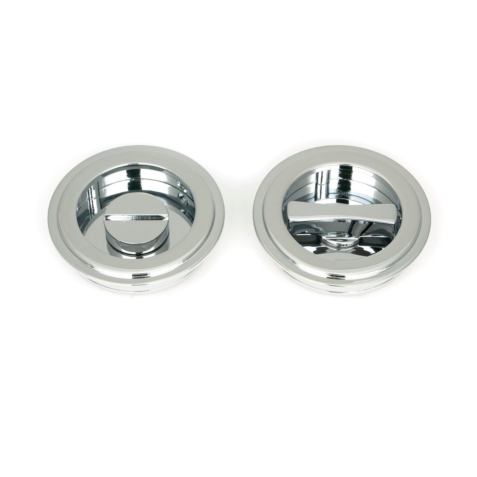 Polished Chrome 60mm Art Deco Round Pull - Privacy Set | From The Anvil