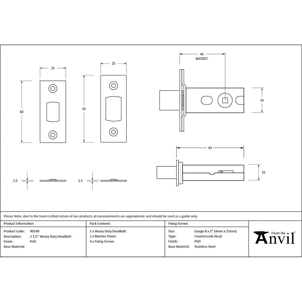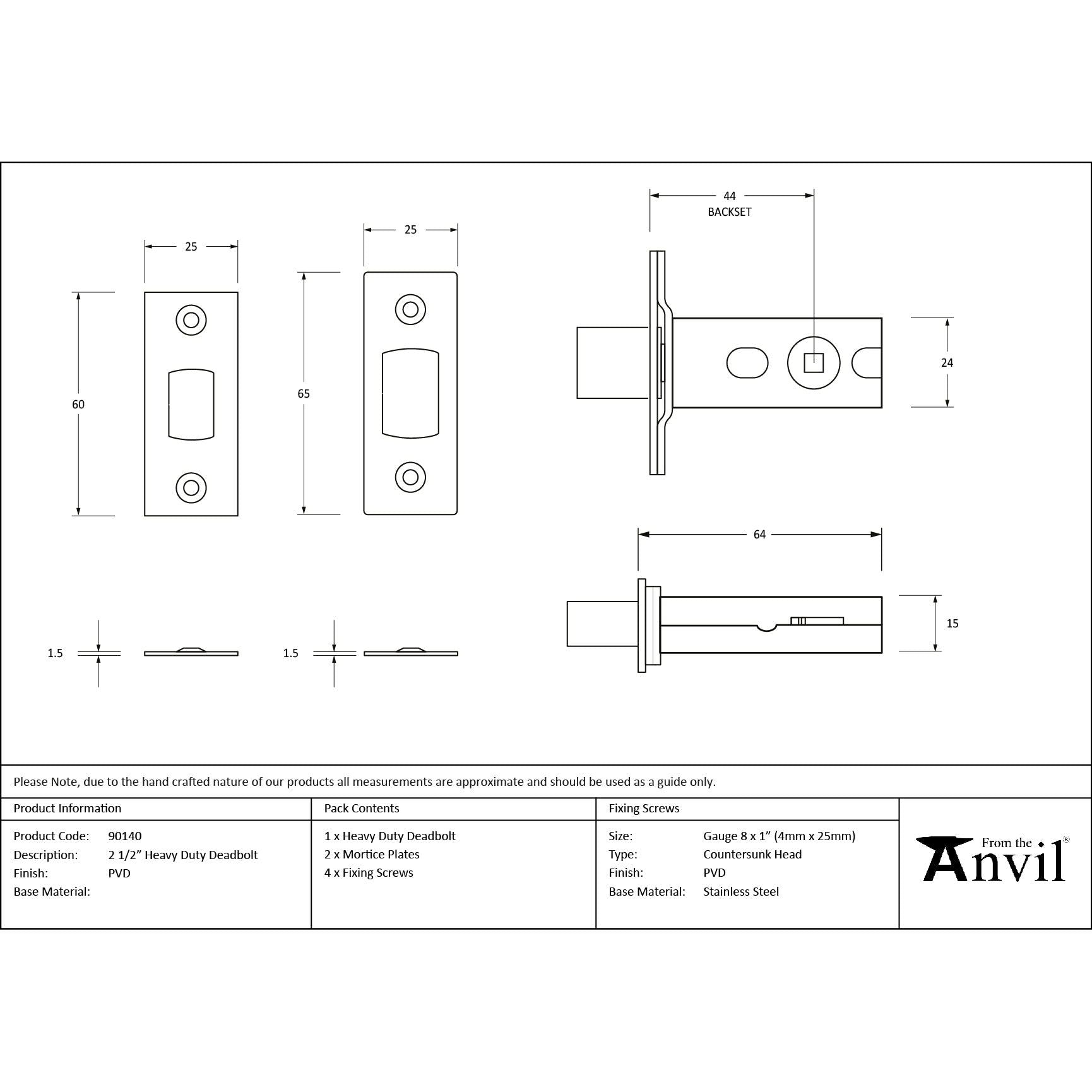PVD 2½" Heavy Duty Tubular Deadbolt | From The Anvil
