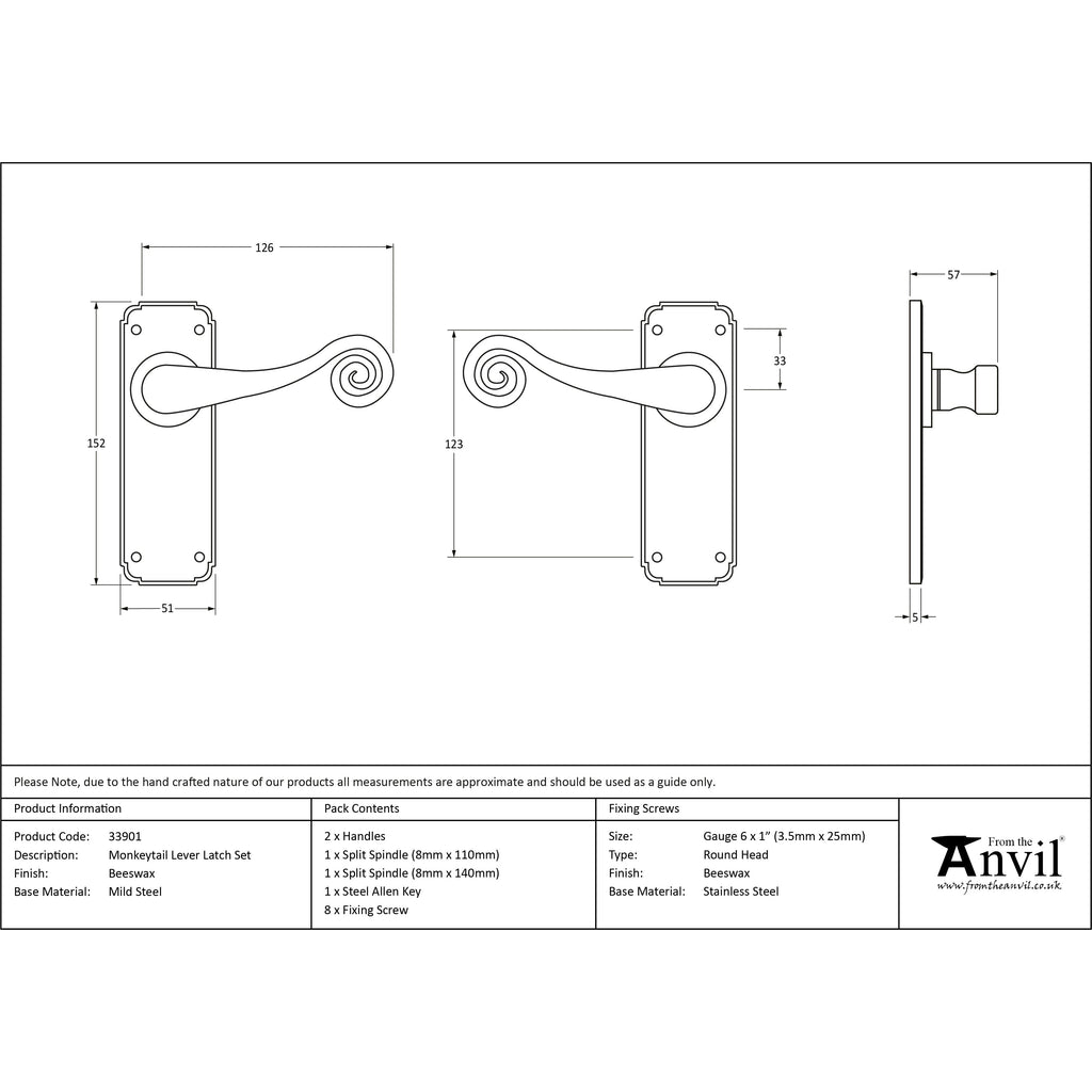 Beeswax Monkeytail Lever Latch Set | From The Anvil