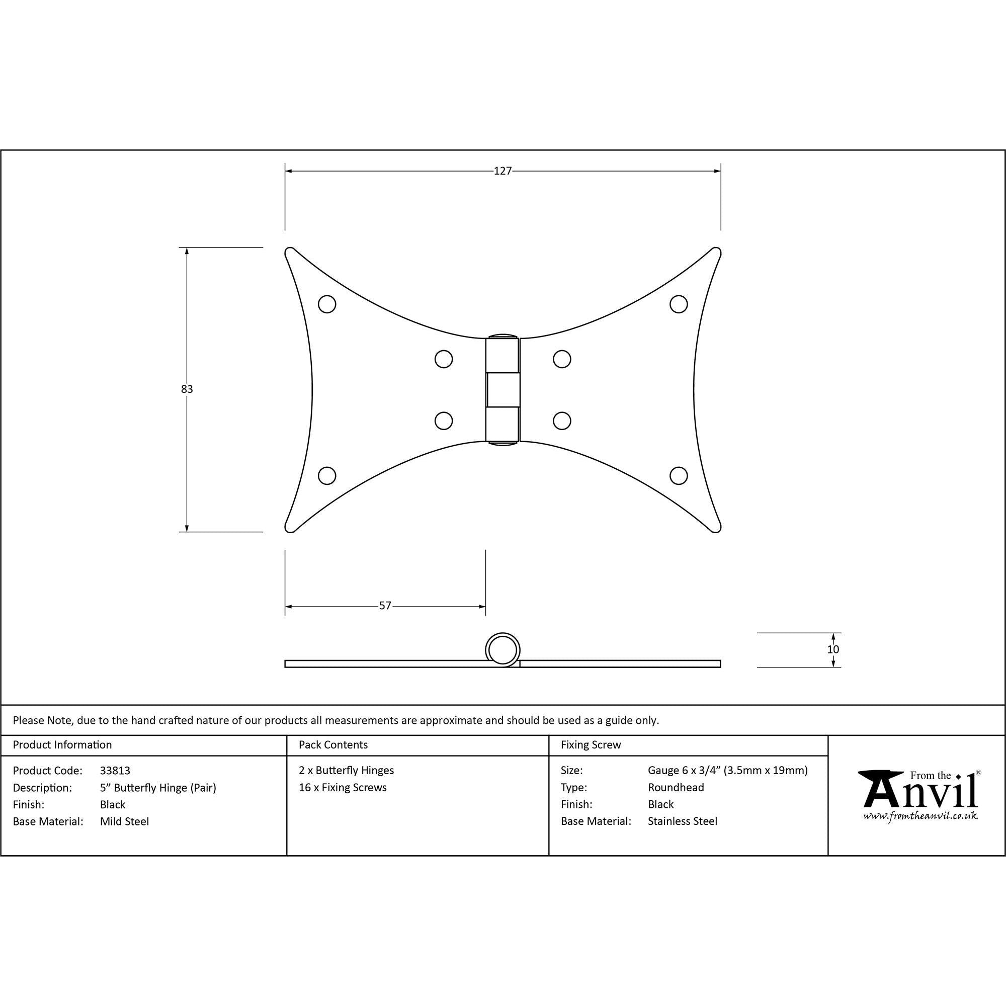 Black 5" Butterfly Hinge (pair) | From The Anvil