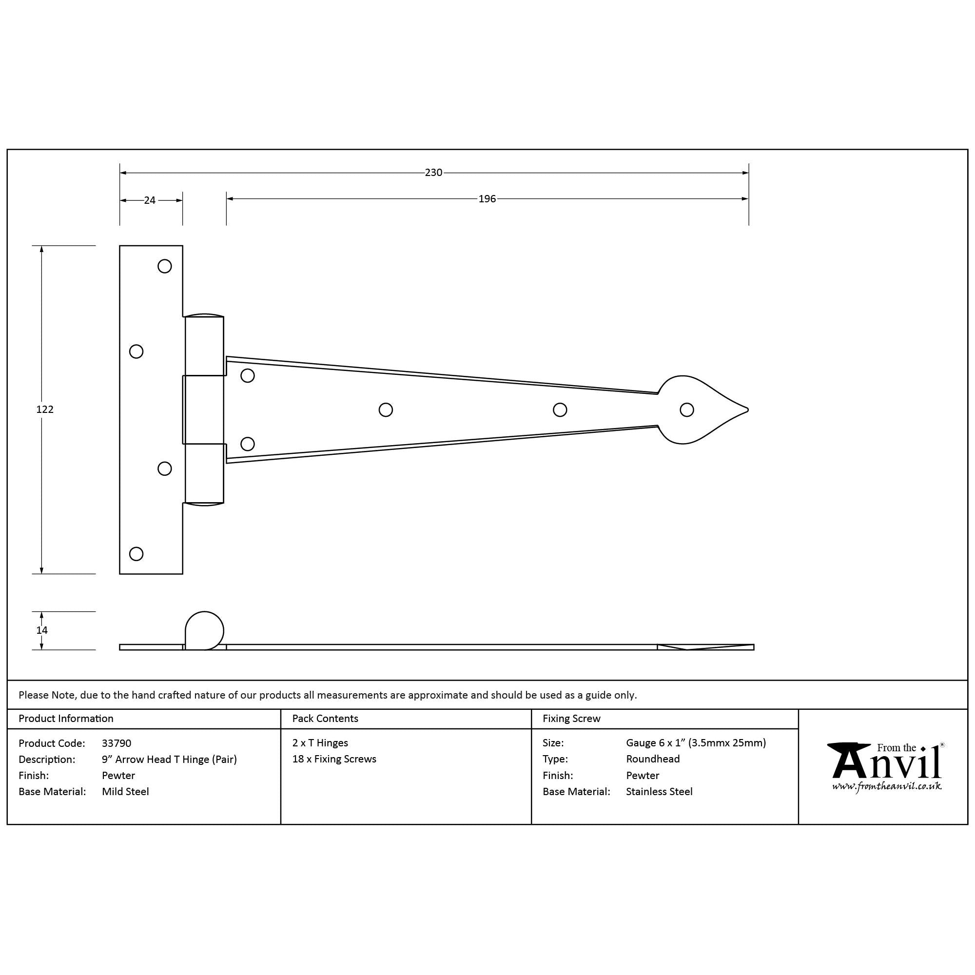 Pewter 9" Arrow Head T Hinge (pair) | From The Anvil