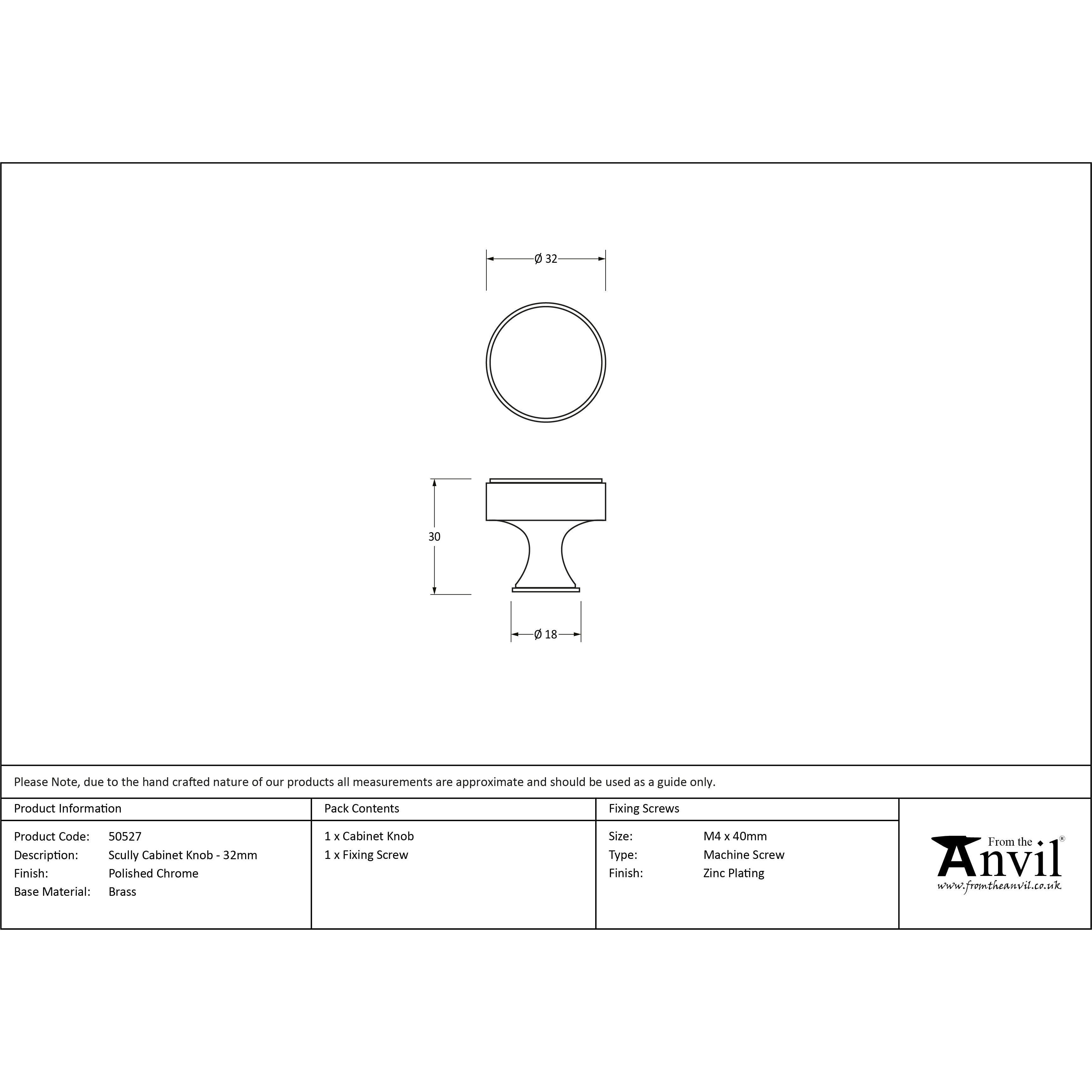 Polished Chrome Scully Cabinet Knob - 32mm | From The Anvil