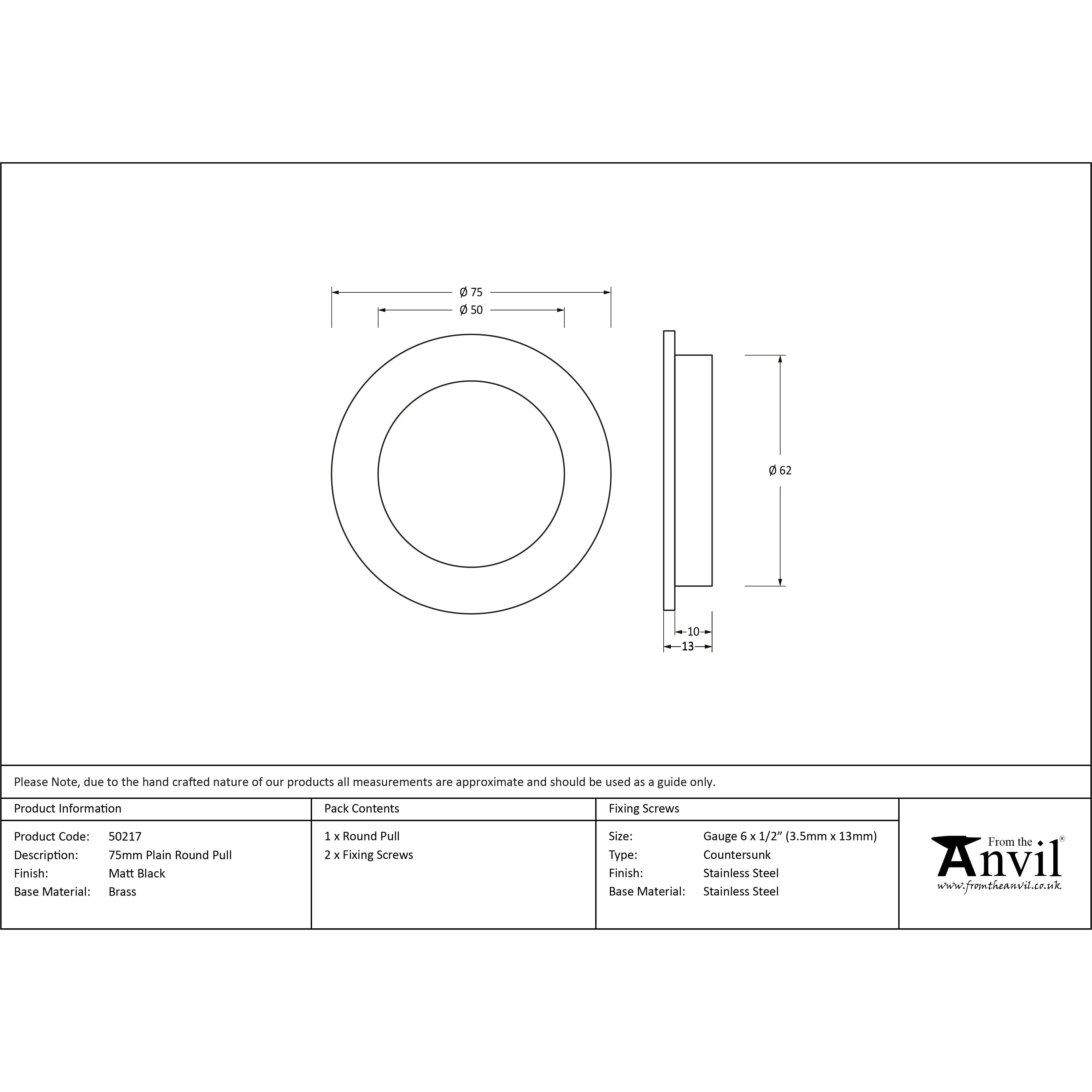 Matt Black 75mm Plain Round Pull | From The Anvil