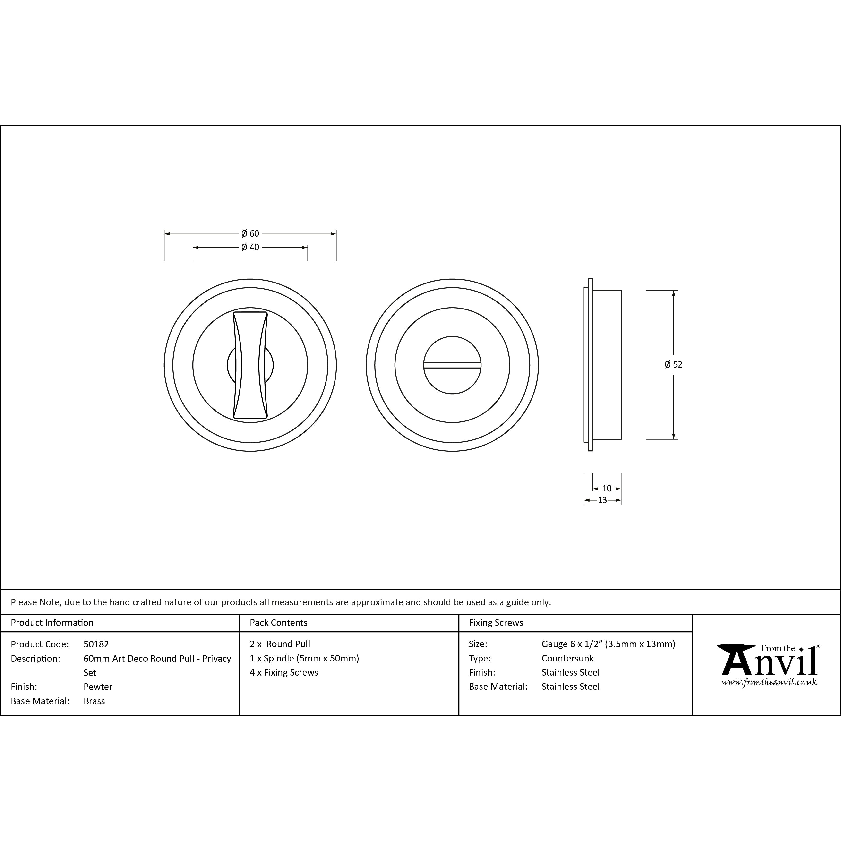Pewter 60mm Art Deco Round Pull - Privacy Set | From The Anvil