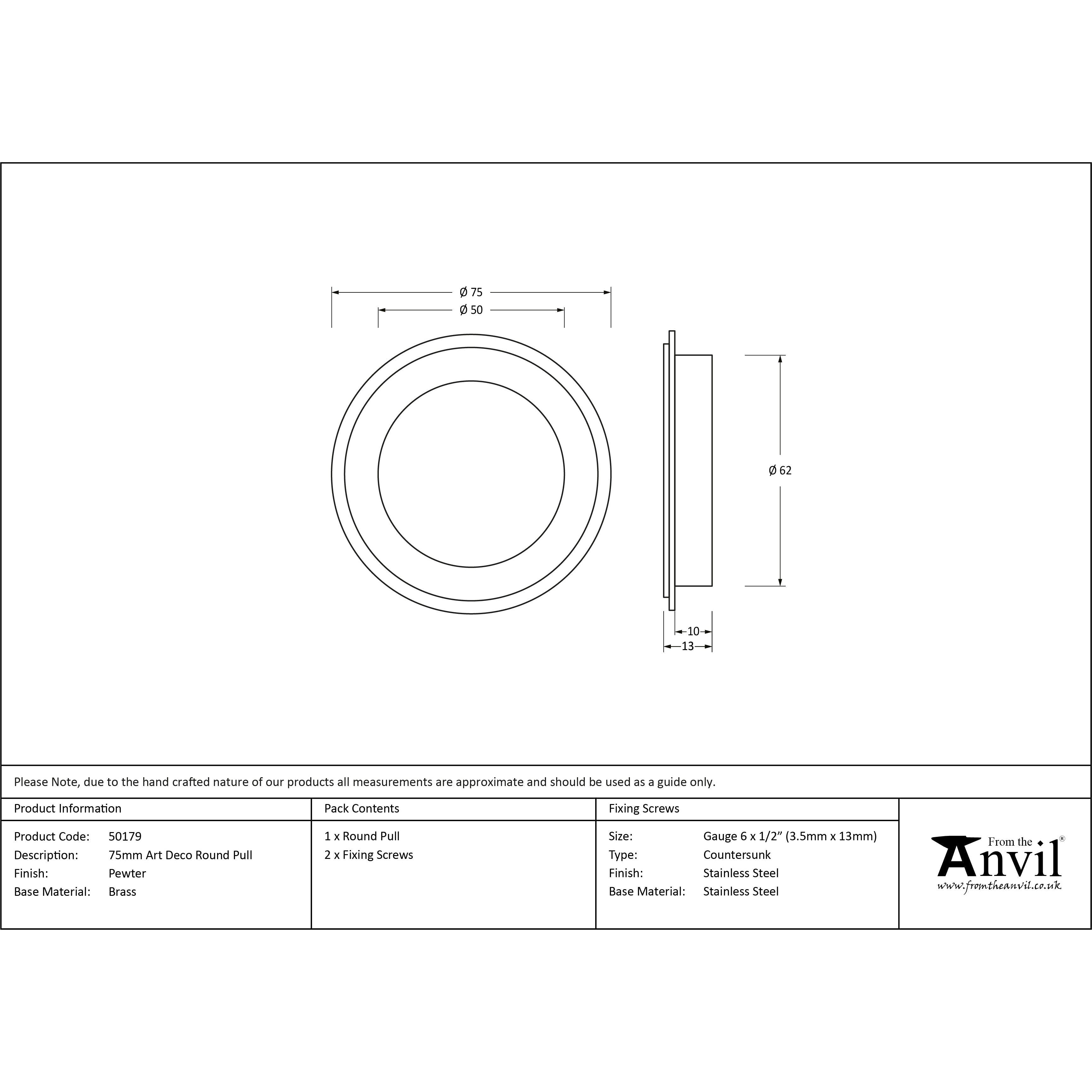 Pewter 75mm Art Deco Round Pull | From The Anvil
