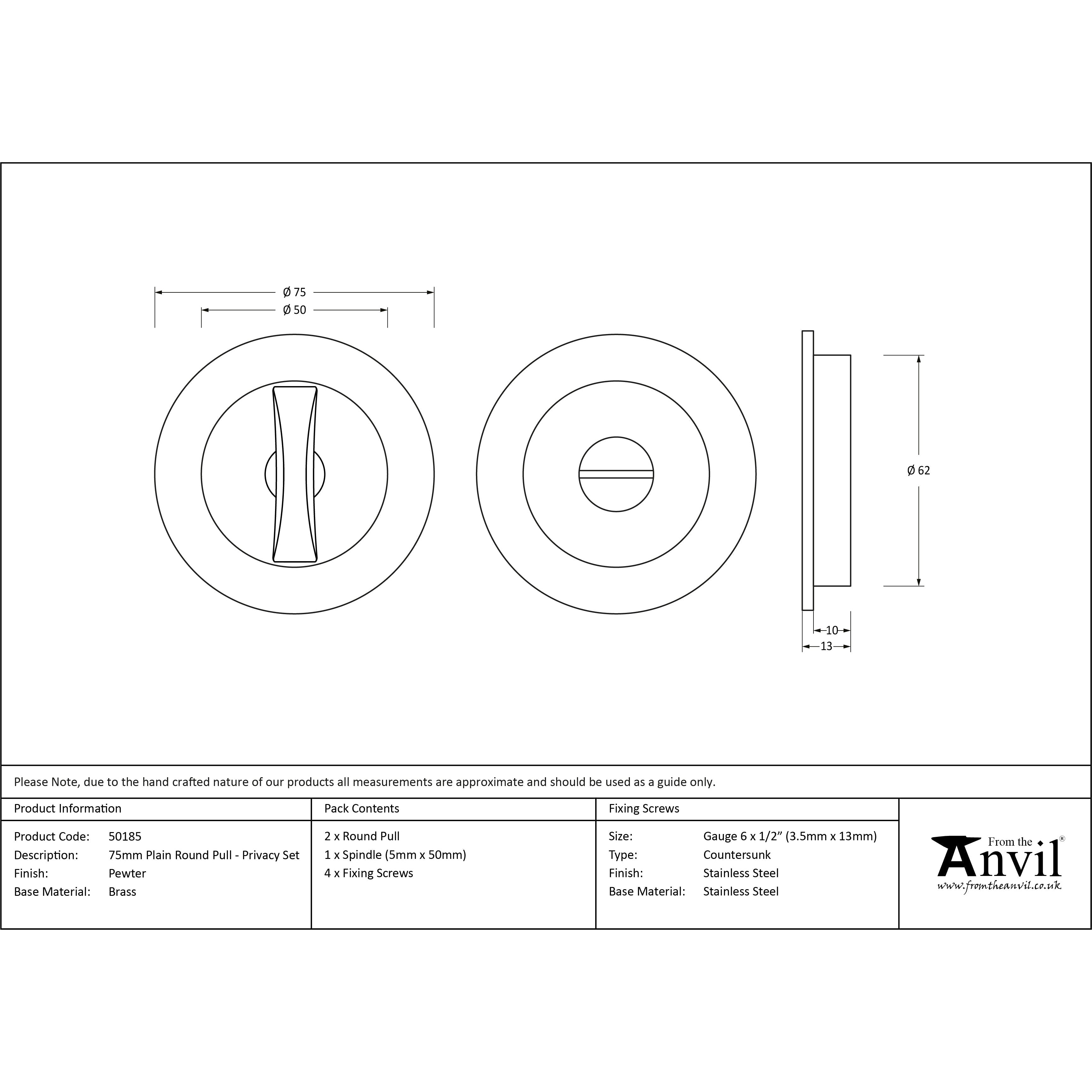 Pewter 75mm Plain Round Pull - Privacy Set | From The Anvil