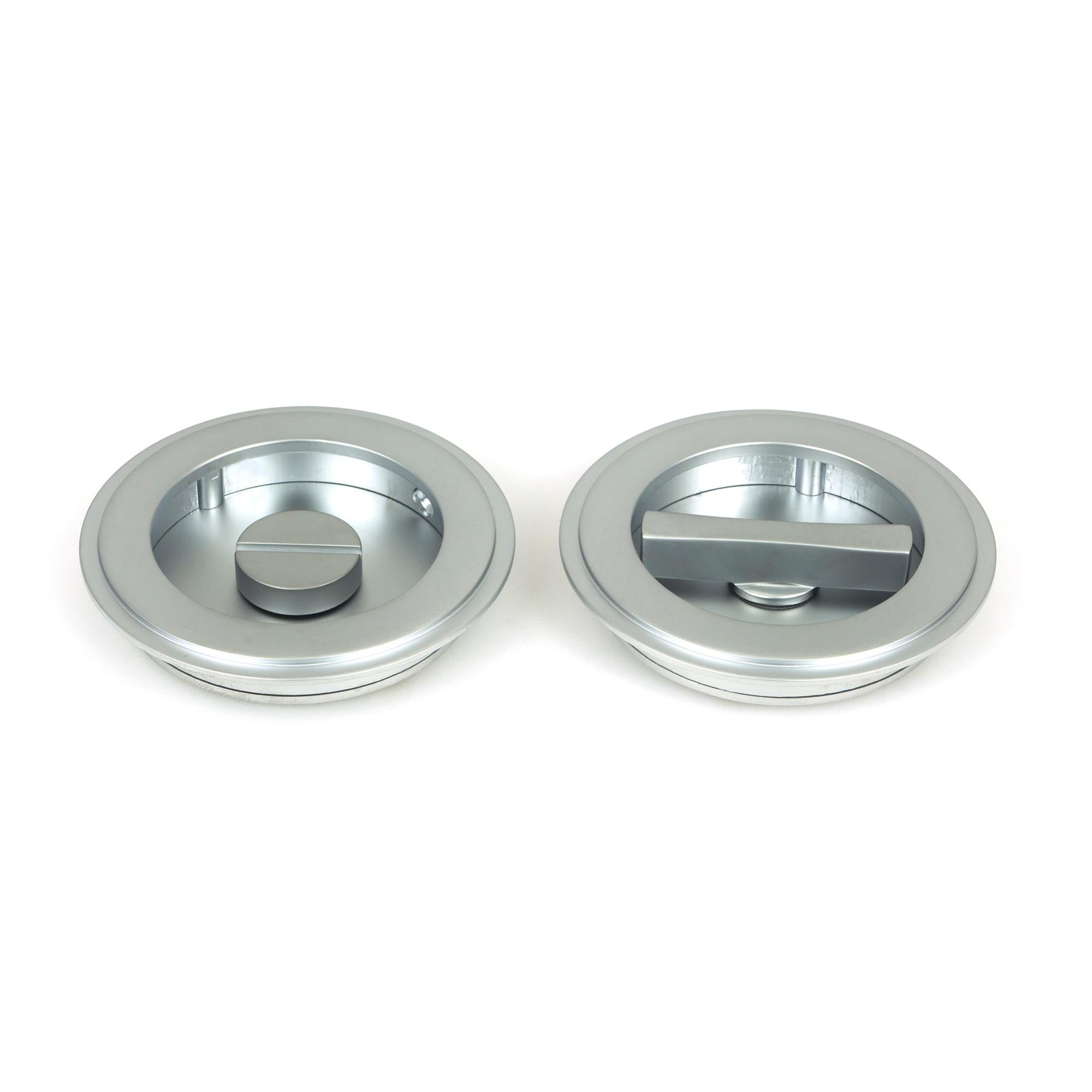 Satin Chrome 75mm Art Deco Round Pull - Privacy Set | From The Anvil