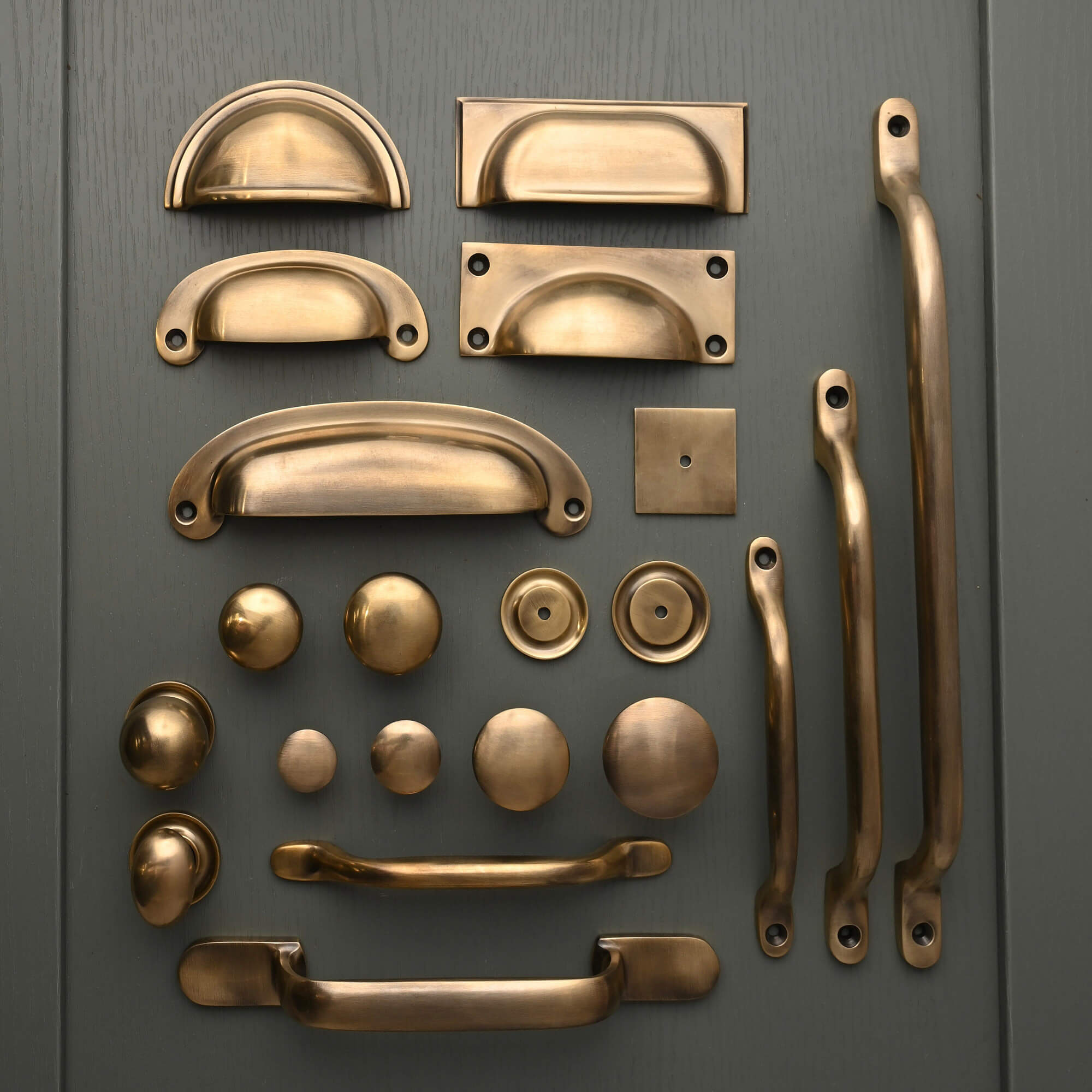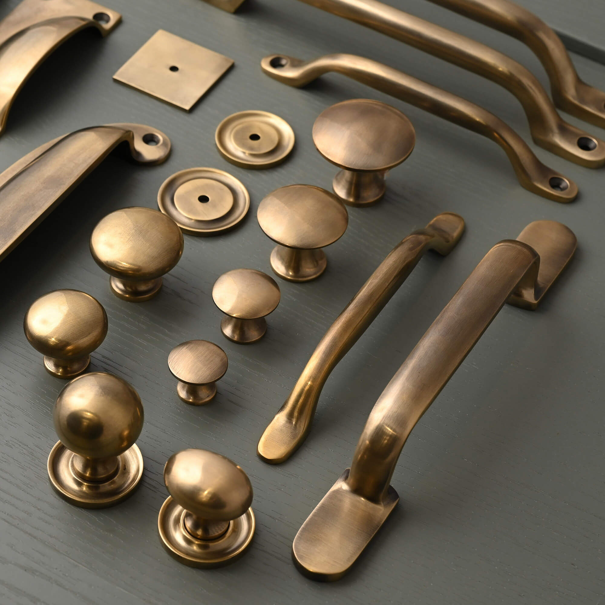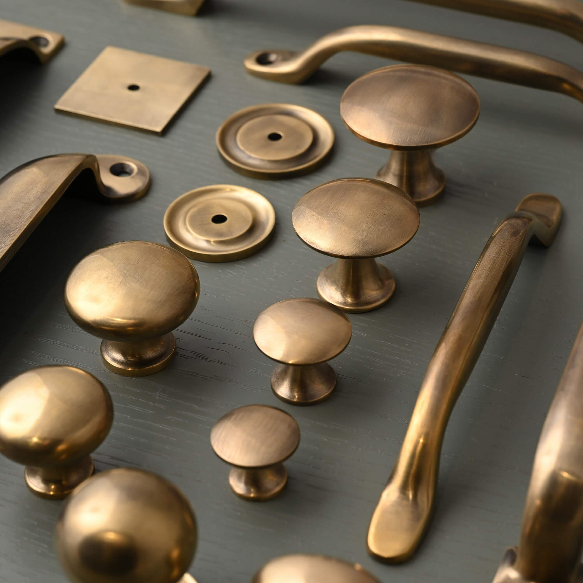 The classic collection is the perfect finishing touch to any shaker kitchen as shown here in this beautiful design. Drawer pulls, mushroom knobs and ironbridge brackets were all used in our aged brass finish to create a shaker kitchen that is effortlessly timeless and stylish.
