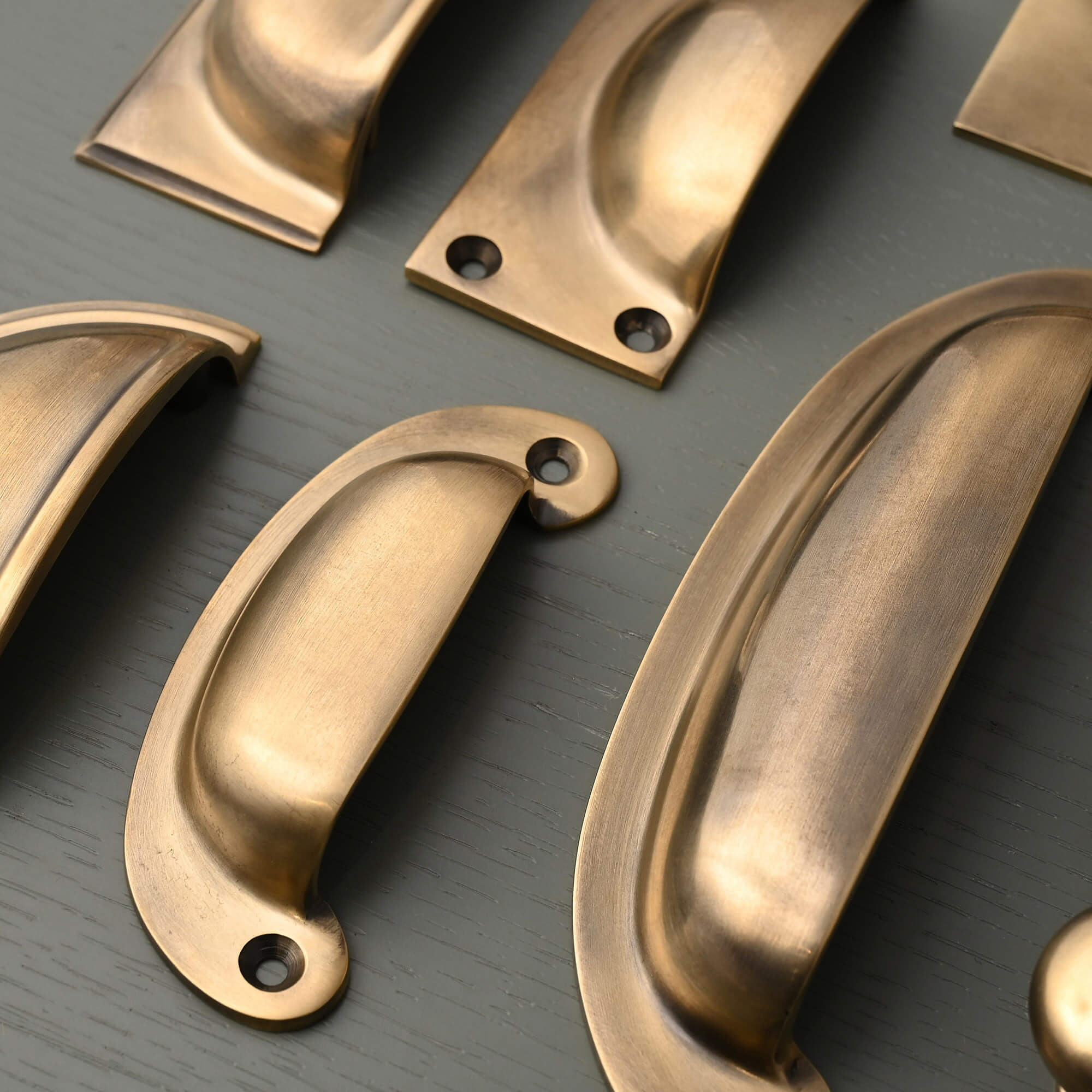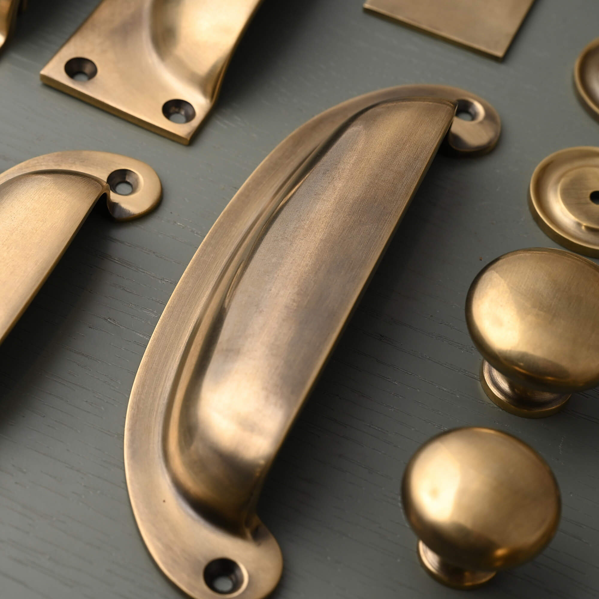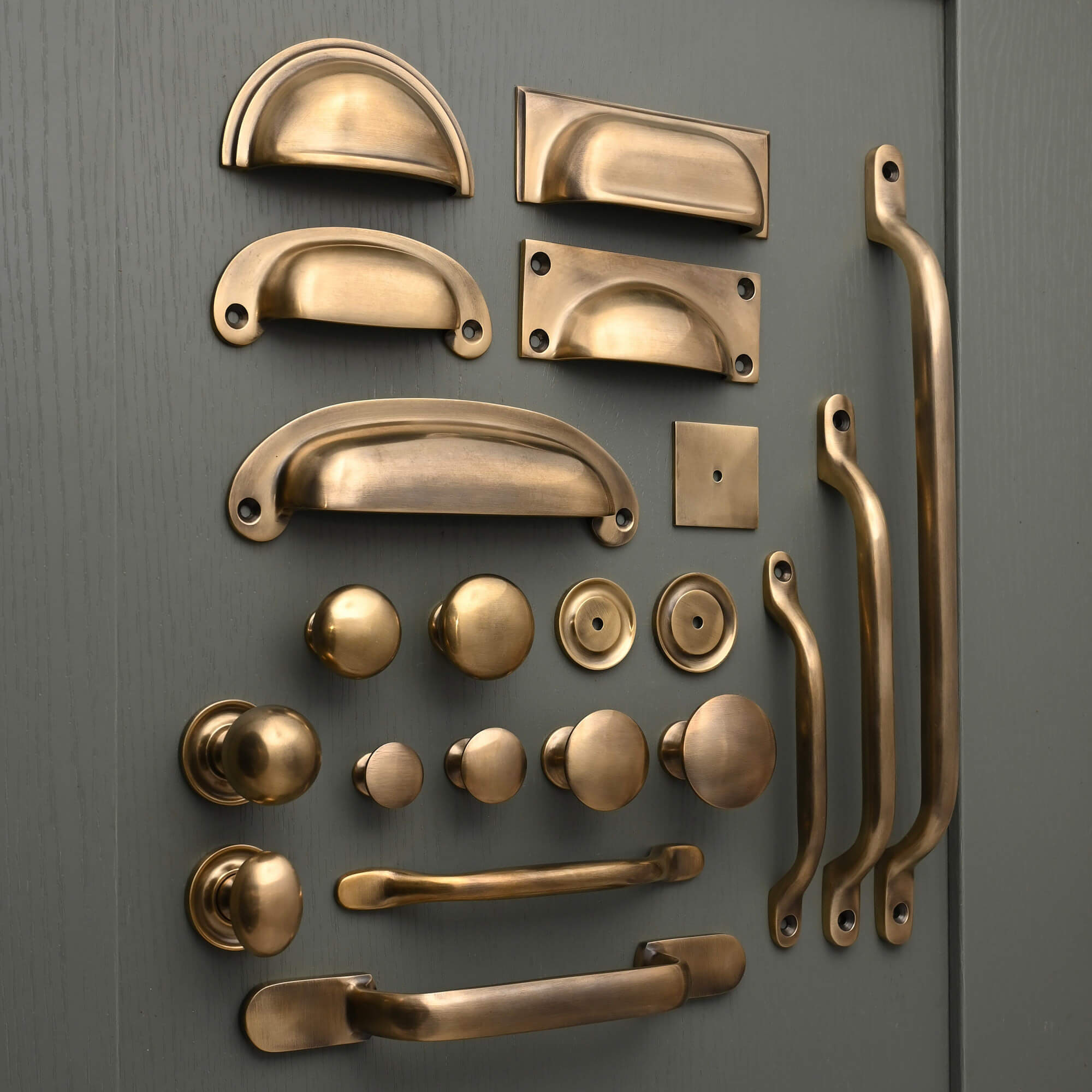 The classic collection is the perfect finishing touch to any shaker kitchen as shown here in this beautiful design. Drawer pulls, mushroom knobs and ironbridge brackets were all used in our aged brass finish to create a shaker kitchen that is effortlessly timeless and stylish.