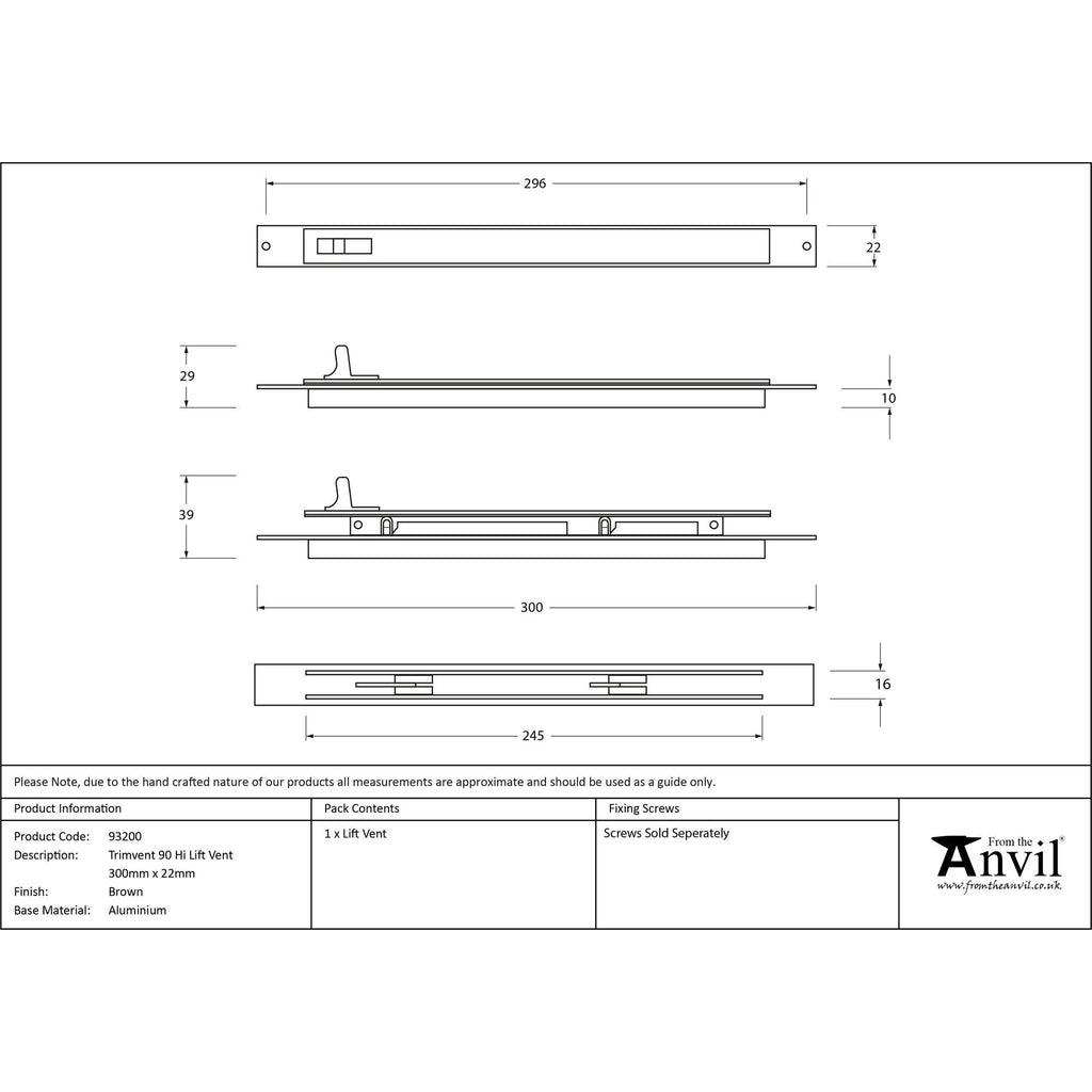 Brown Trimvent 90 Hi Lift Vent 300mm x 22mm | From The Anvil