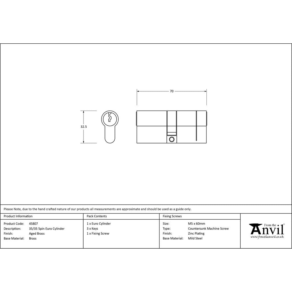 Aged Brass 35/35 5pin Euro Cylinder | From The Anvil