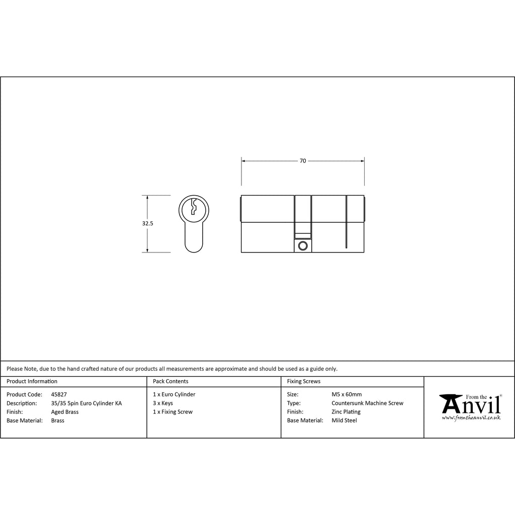 Aged Brass 35/35 5pin Euro Cylinder KA | From The Anvil