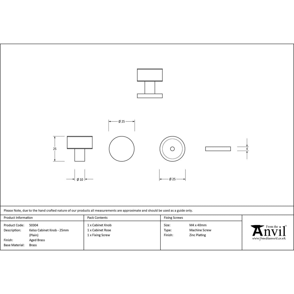 Aged Brass Kelso Cabinet Knob - 25mm (Plain) | From The Anvil