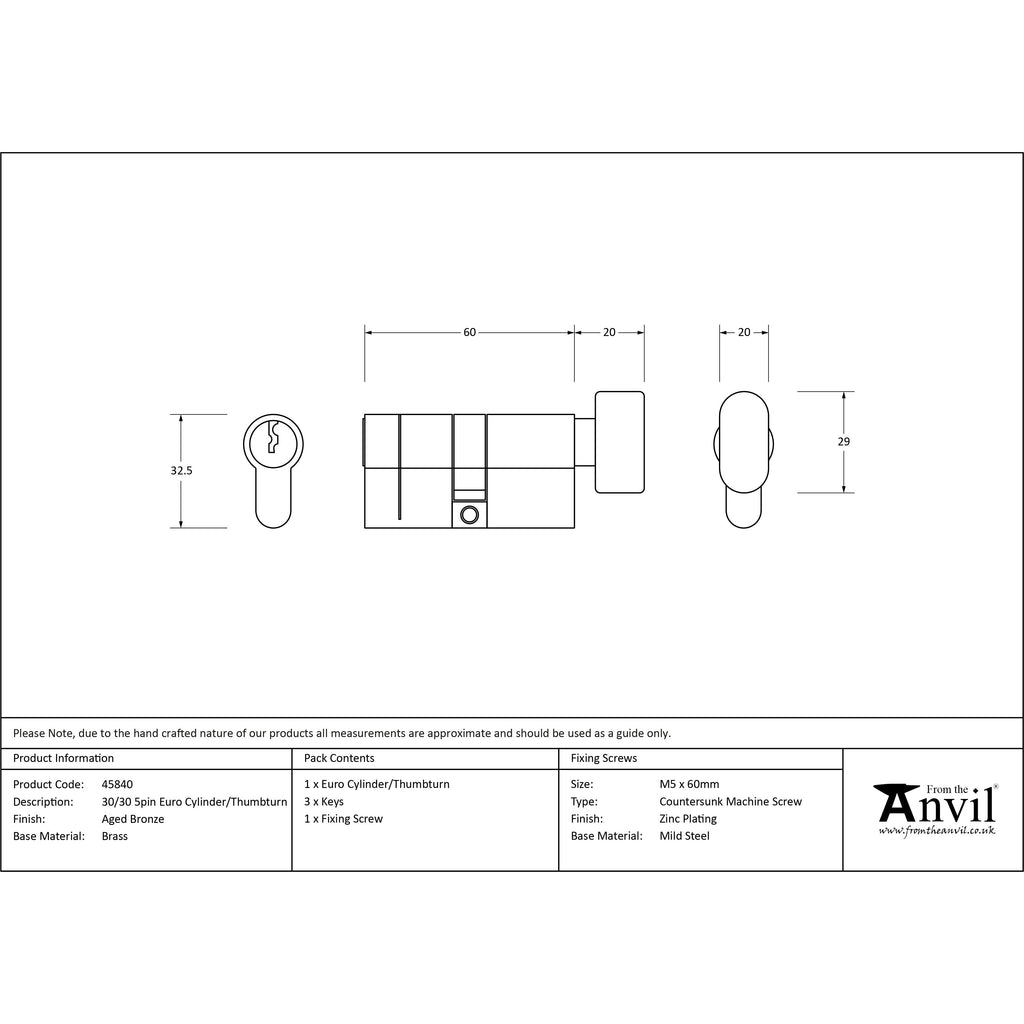 Aged Bronze 30/30 5pin Euro Cylinder/Thumbturn | From The Anvil