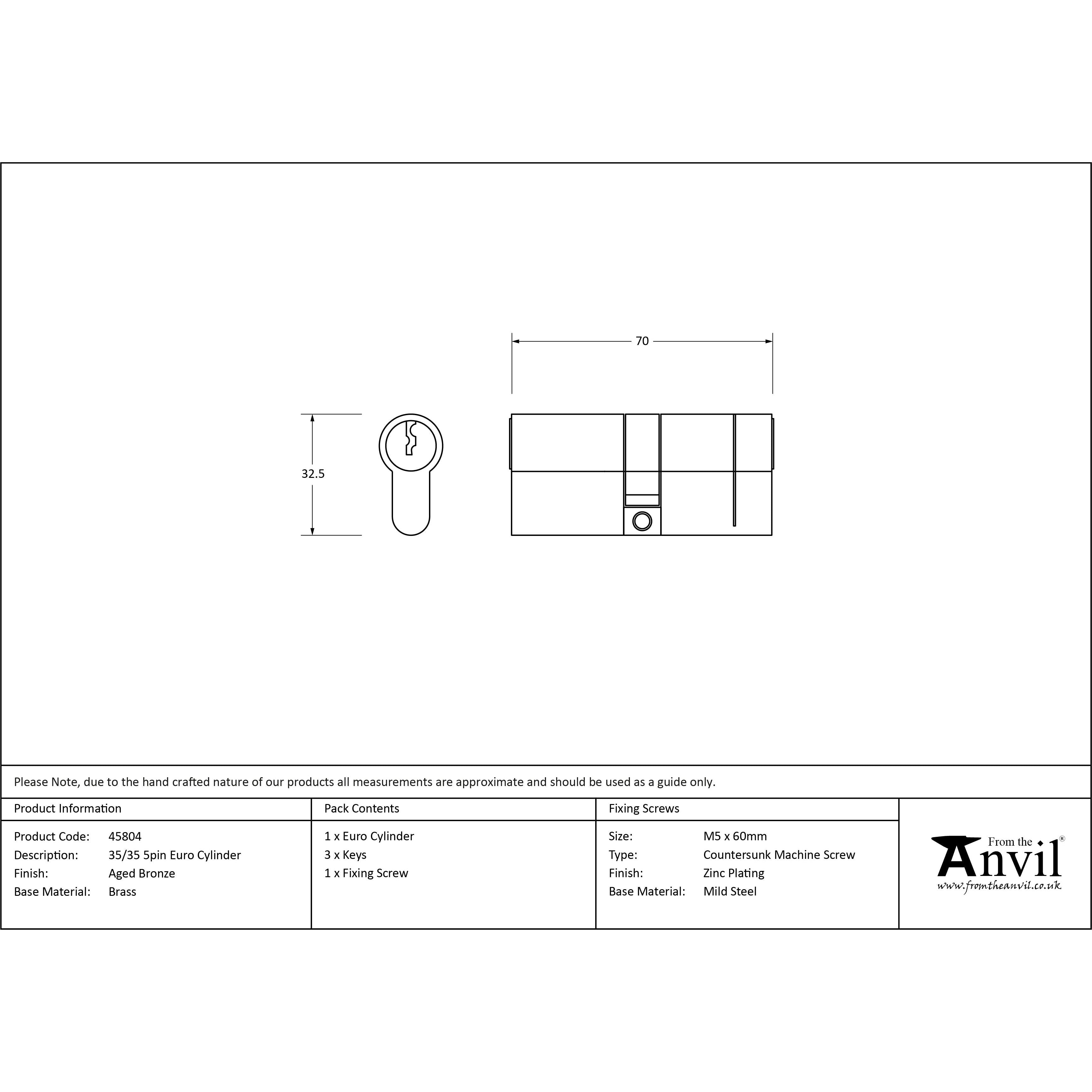 Aged Bronze 35/35 5pin Euro Cylinder | From The Anvil