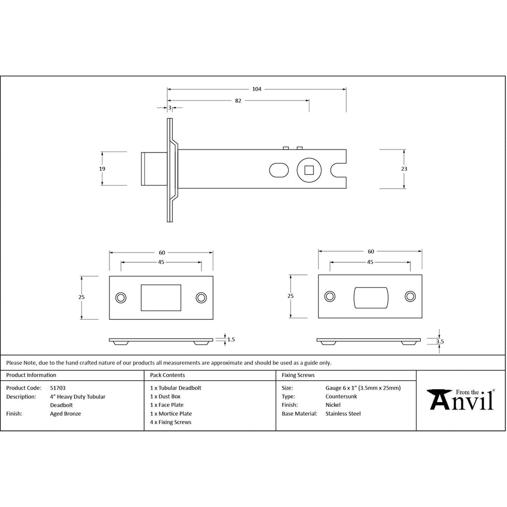 Aged Bronze 4" Heavy Duty Tubular Deadbolt