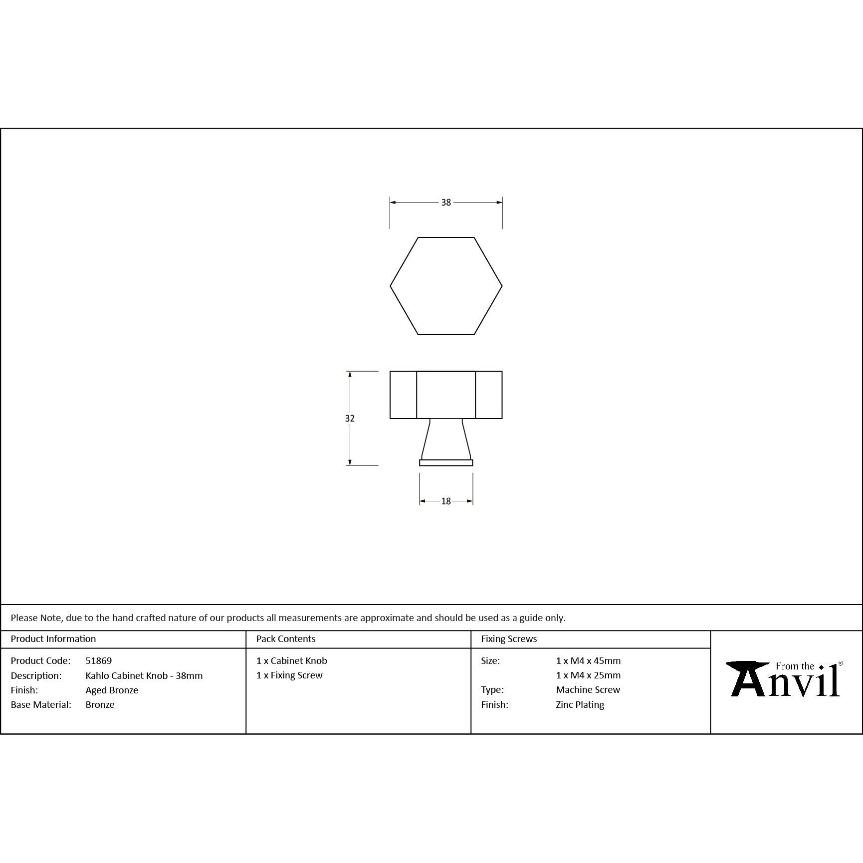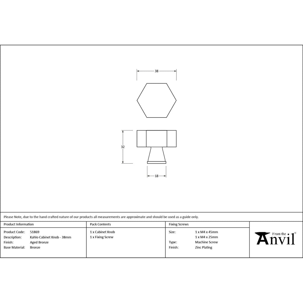 Aged Bronze Kahlo Cabinet Knob - 38mm
